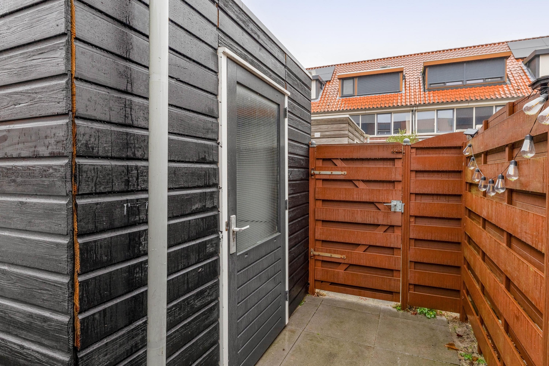 - Zonnige achtertuin op het oosten met een houten berging;