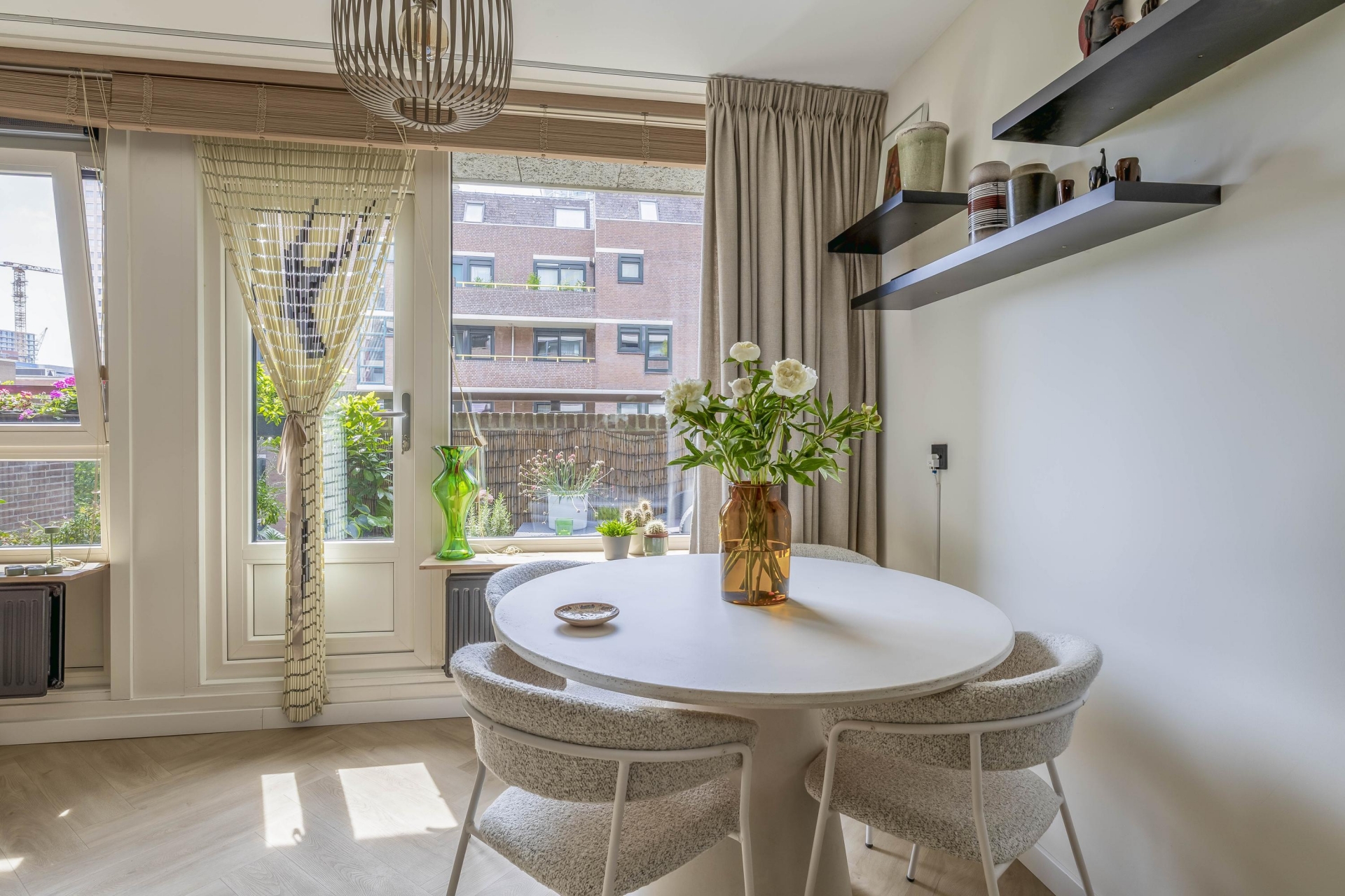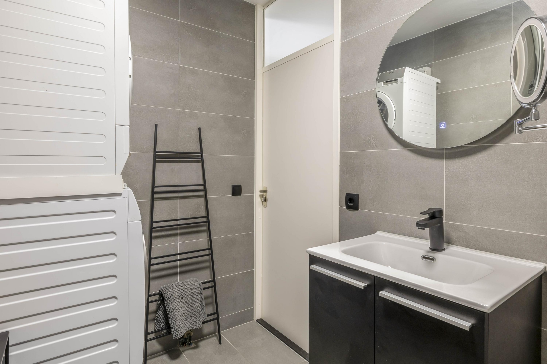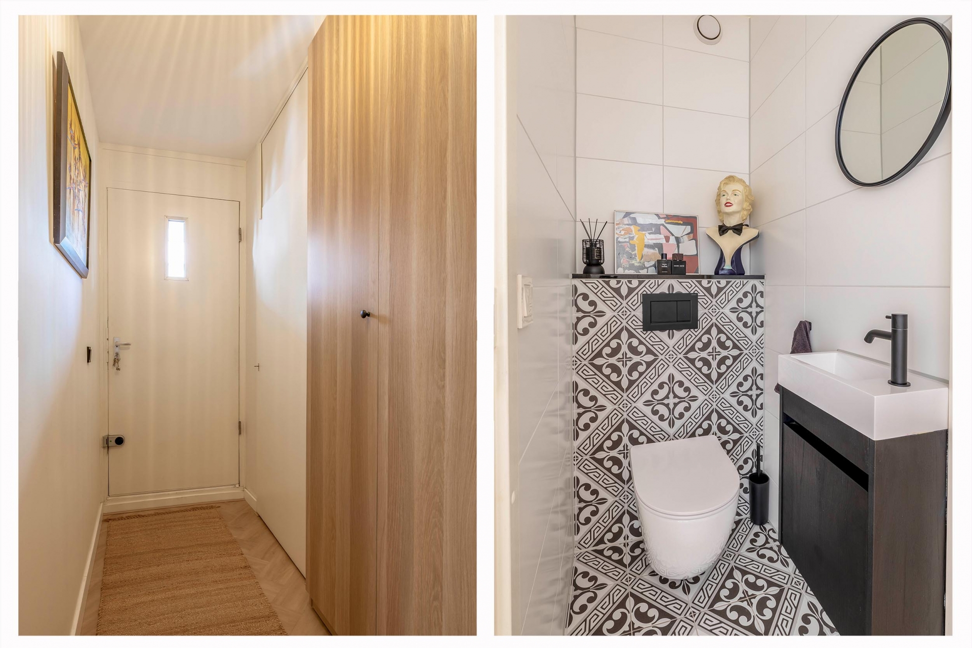 In de afgelopen jaren is veel gerenoveerd. De badkamer, het toilet, de keuken, het stuc- en schilderwerk, de plafonds, de elektra en de vloer – alles is vernieuwd met oog voor stijl en kwaliteit. De keuken is voorzien van moderne inbouwapparatuur, waaronder een combi-oven en inductiekookplaat, perfect geïntegreerd in een strakke opstelling. De nieuwe PVC-vloer loopt naadloos door het appartement en zorgt voor een rustige, moderne basis. In de hal zijn op maat gemaakte inbouwkasten geplaatst, wat zorgt voor extra bergruimte en een nette uitstraling.