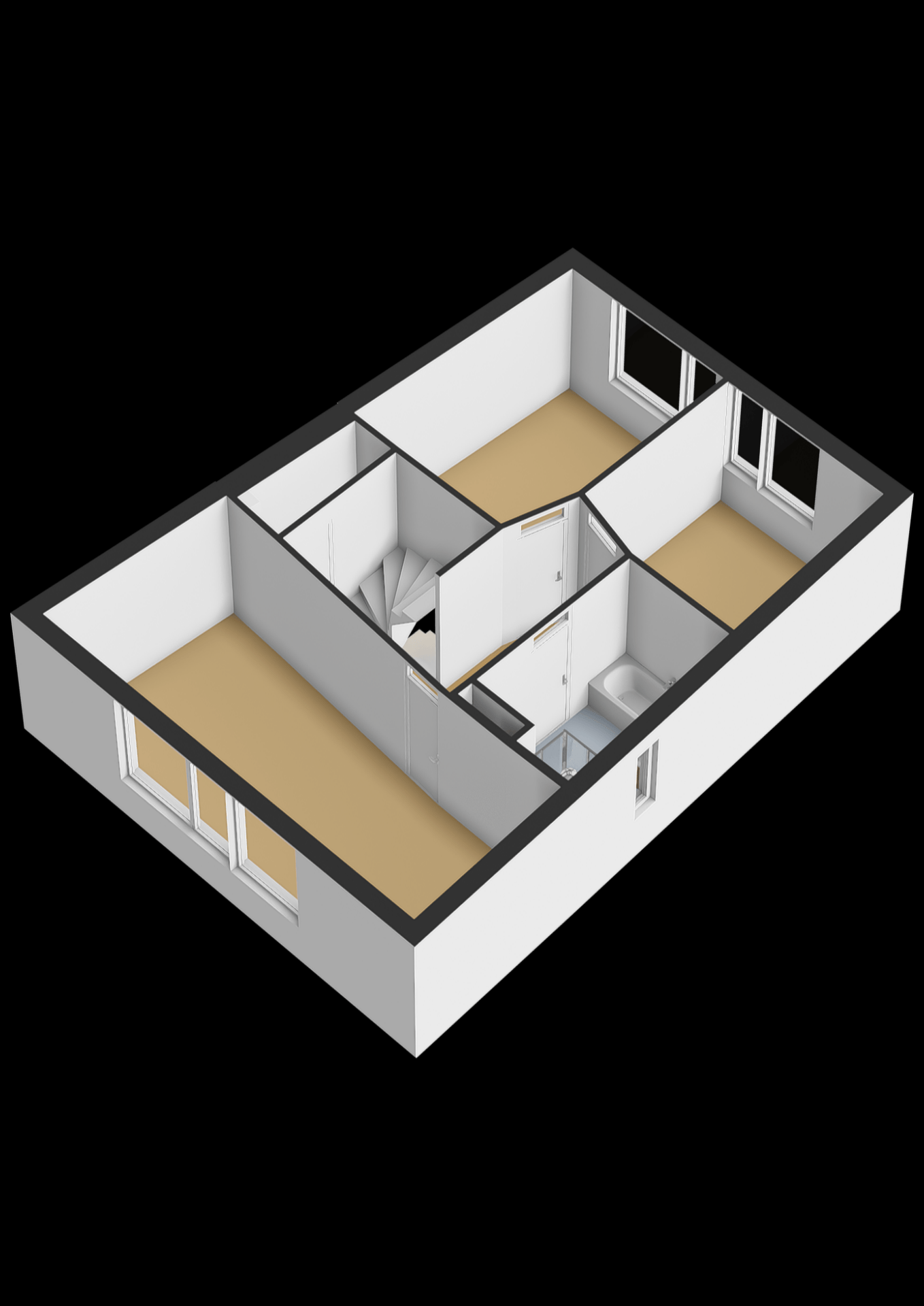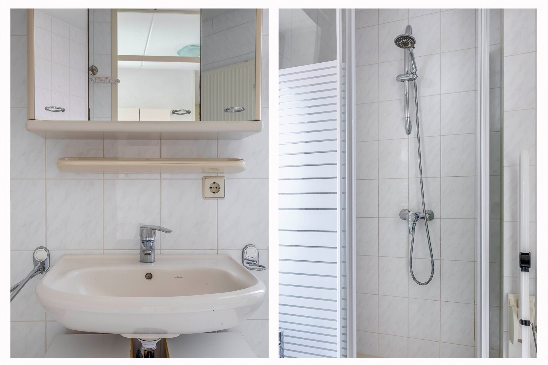 Hier vind je drie slaapkamers: twee aan de achterzijde en één royale kamer aan de voorzijde. De badkamer is volledig betegeld en voorzien van een ligbad, separate douche, wastafel en een tweede toilet.