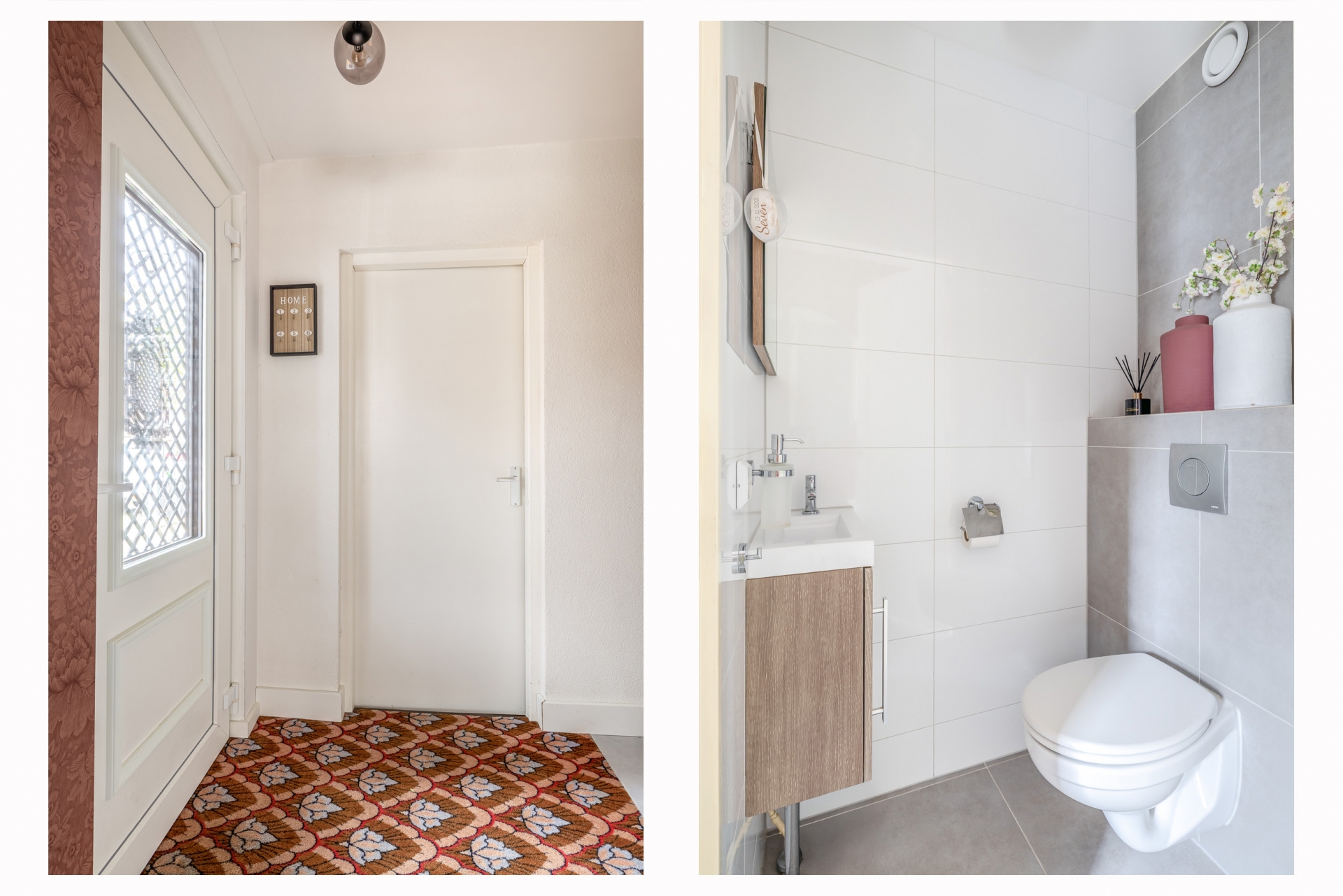 De badkamer is netjes en compleet uitgevoerd met een douche, wastafelmeubel en toilet. Alles wat je nodig hebt is aanwezig en functioneert prima.