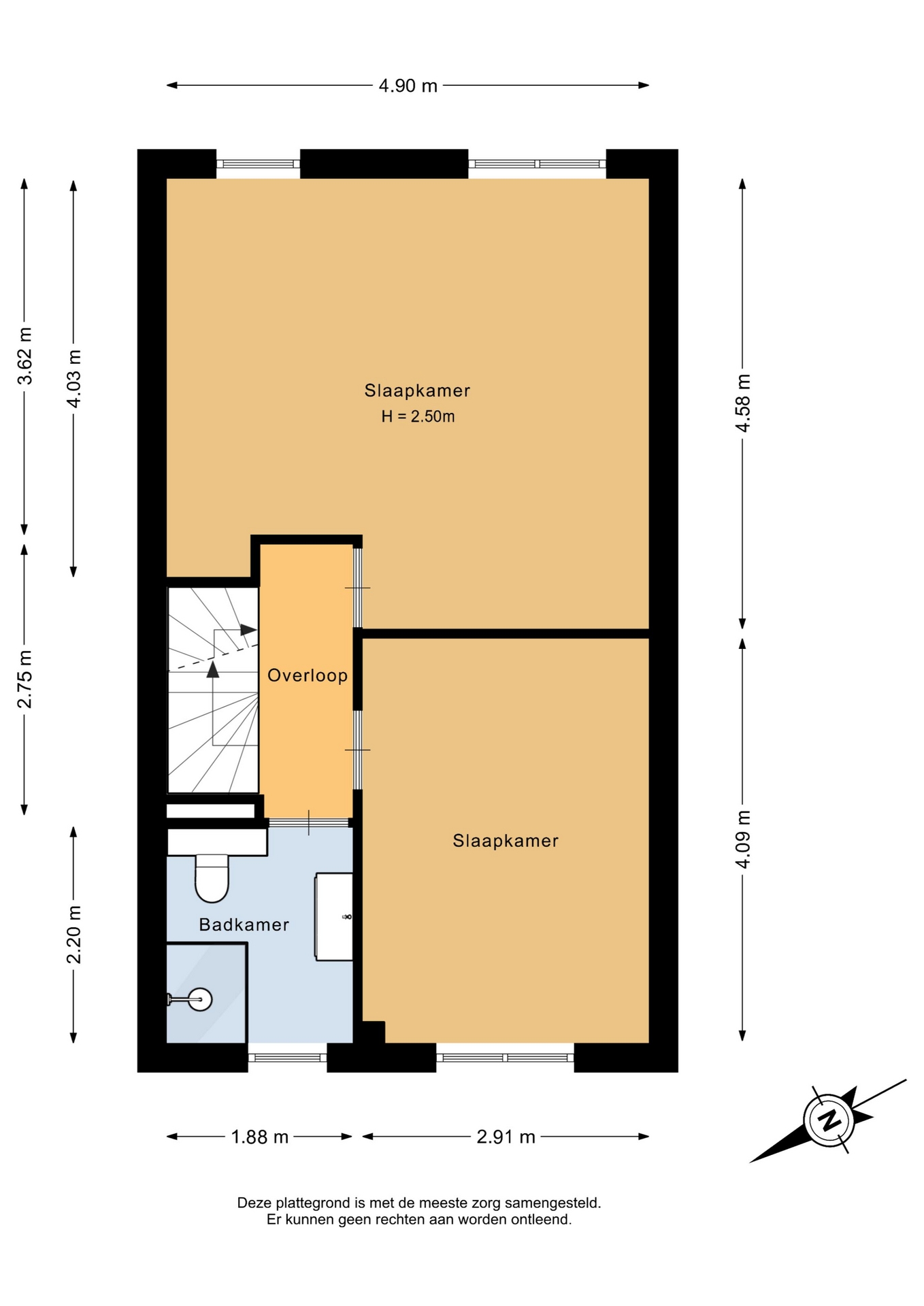 Op de eerste verdieping bevinden zich twee ruime slaapkamers (voorheen 3). De grootste slaapkamer ligt aan de achterzijde en biedt volop ruimte voor een groot bed en kasten. De tweede slaapkamer is eveneens goed van formaat en flexibel in te richten.