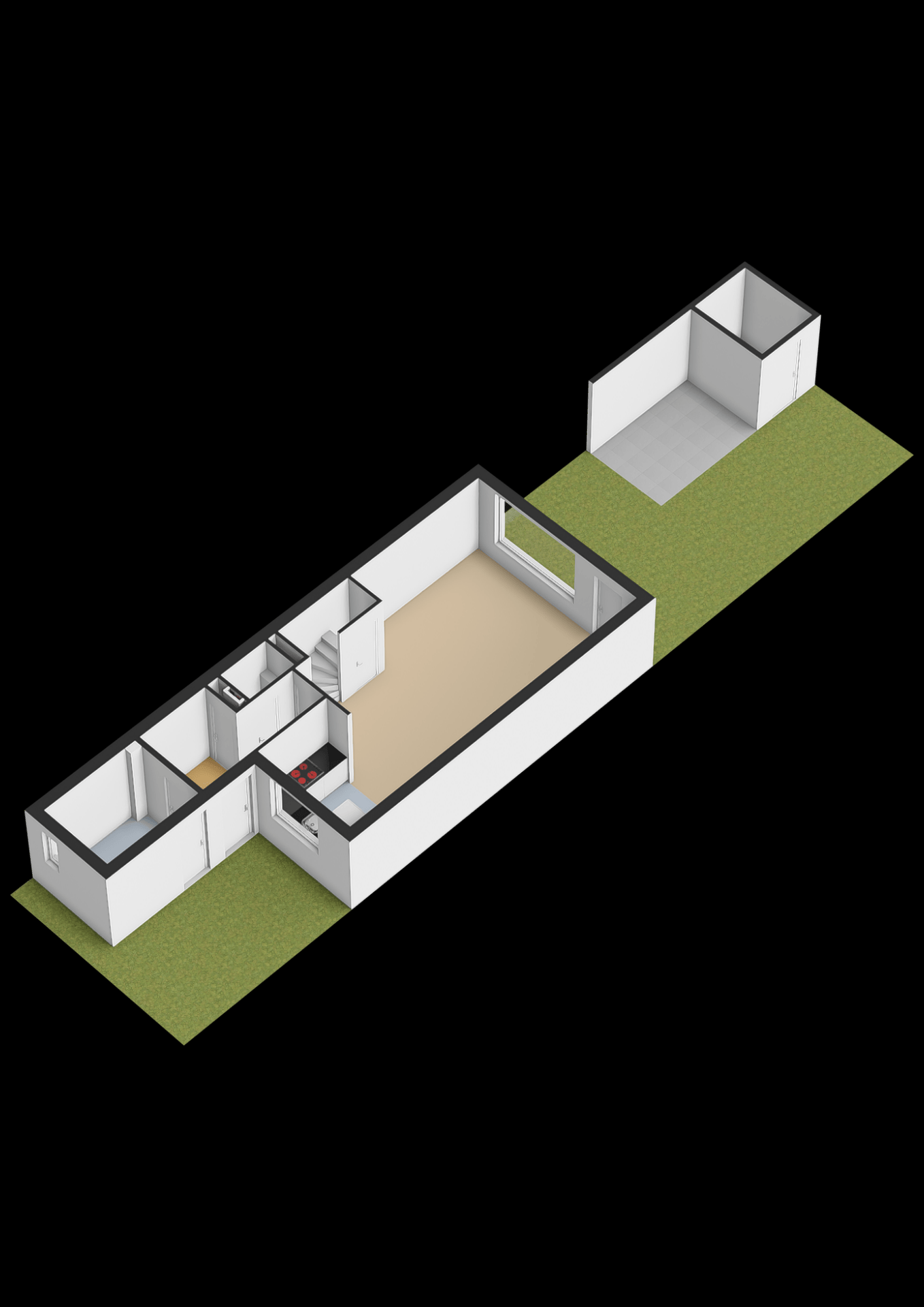 Aan de voorzijde van het huis bevindt zich de voormalige berging, die momenteel in gebruik is als trimsalon. Deze ruimte is multifunctioneel en leent zich perfect voor werken aan huis, een praktijkruimte of extra opslag.
