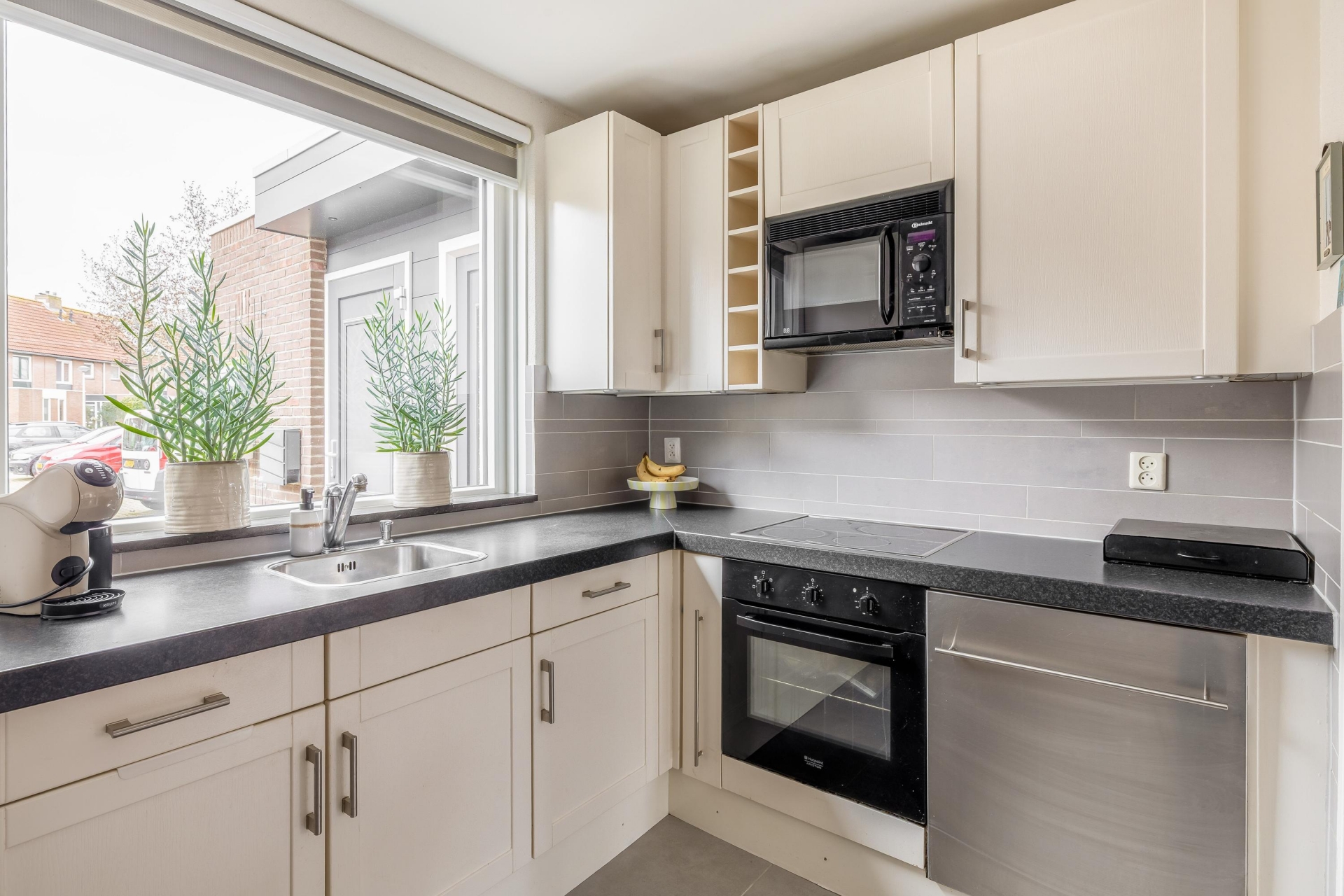 Aan de voorzijde van het huis ligt de keuken. Deze is praktisch ingericht en voorzien van de benodigde inbouwapparatuur. Door de ligging aan de straatzijde heb je hier prettig licht en contact met buiten.