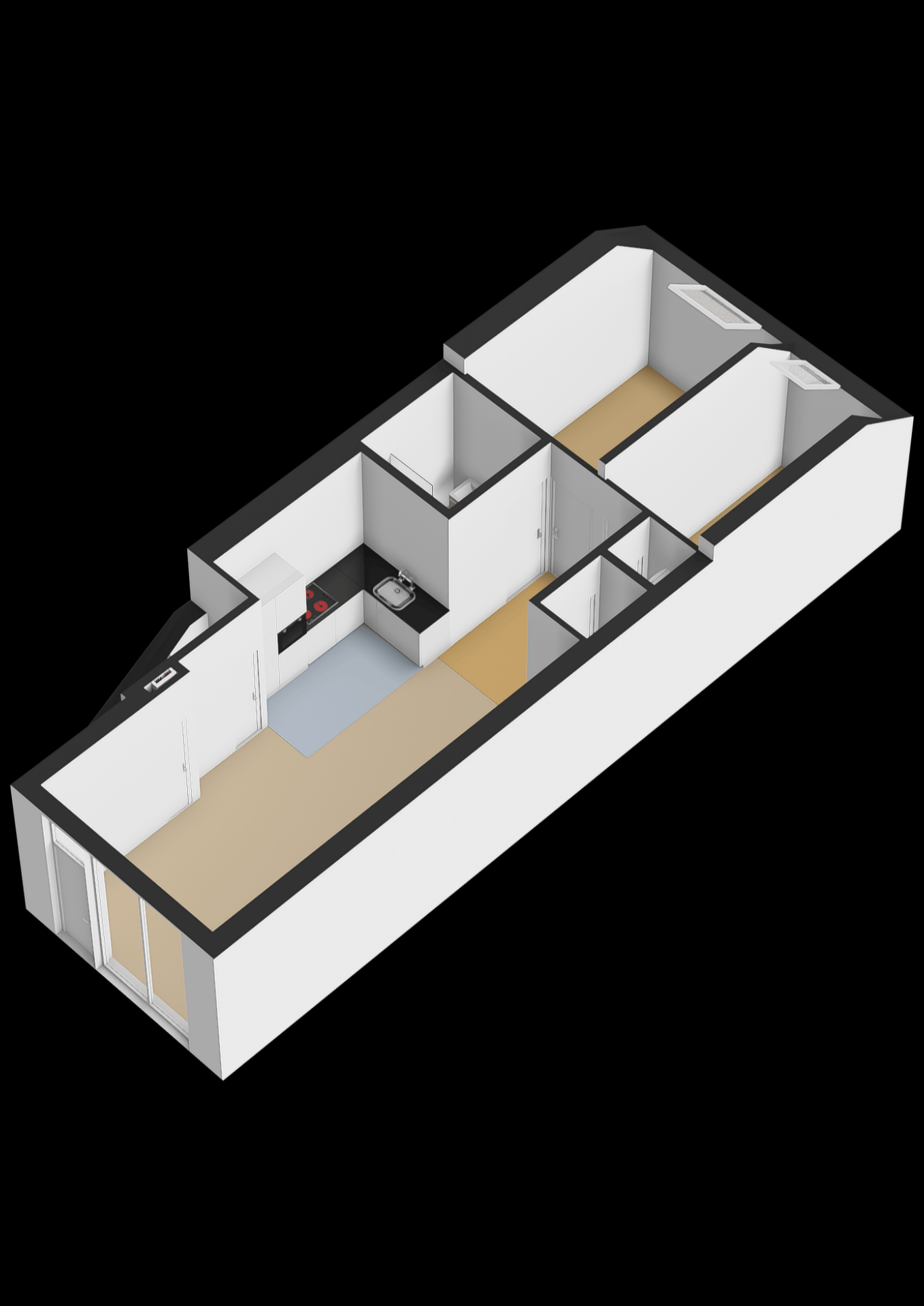 De twee slaapkamers beschikken beide over een dakraam, waardoor het natuurlijke licht rijkelijk binnenvalt. Perfect als rustige slaapruimte of als thuiswerkplek.