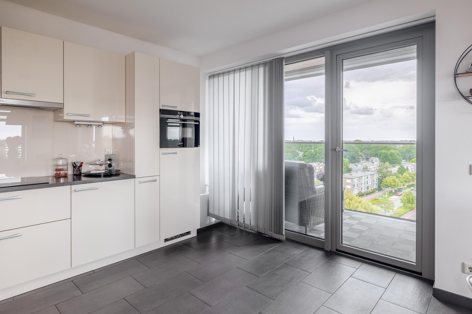 Vanuit de keuken stapt u het balkon op, gelegen op een prettige zonnestand. Dit is dé plek om te ontspannen met een drankje, een boek of een goed gesprek. Door de hoogte geniet u hier van privacy én vergezichten, zonder inkijk.