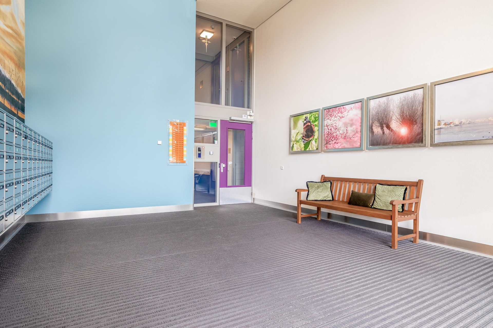 Via de verzorgde en beveiligde entree met bellentableau, brievenbussen, lift en trapopgang bereikt u comfortabel de negende verdieping. De afgesloten fietsenruimte in de onderbouw is een aangenaam pluspunt voor dagelijks gebruik.
