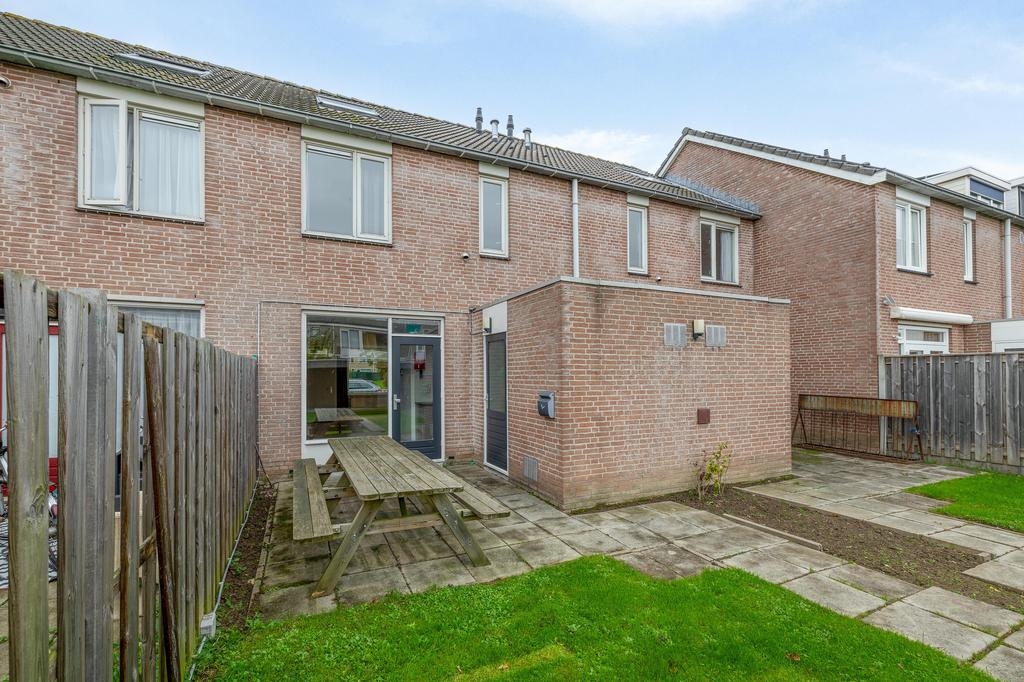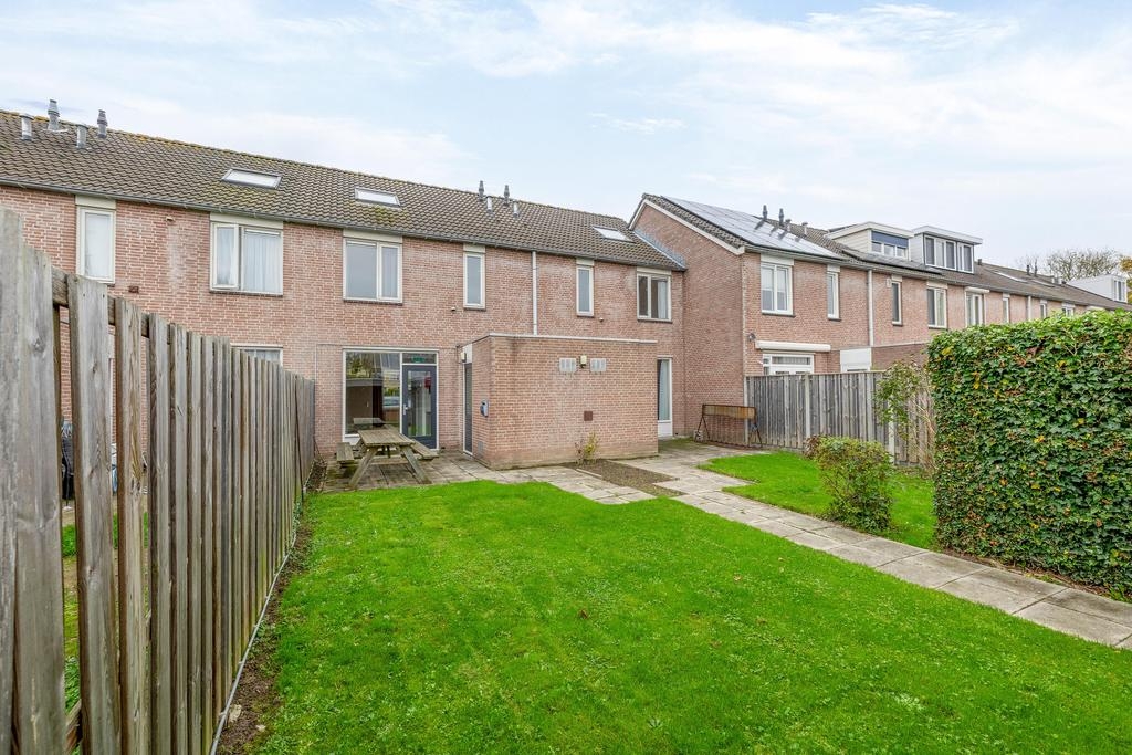 De tuin is tevens bereikbaar via een achterom, wat ideaal is voor het naar binnen rijden van fietsen of het ophalen van tuinafval. De voortuin is eveneens netjes aangelegd en doordat de woning aan een rustig pad ligt, heb je geen inkijk van voorbijgangers of verkeer.
