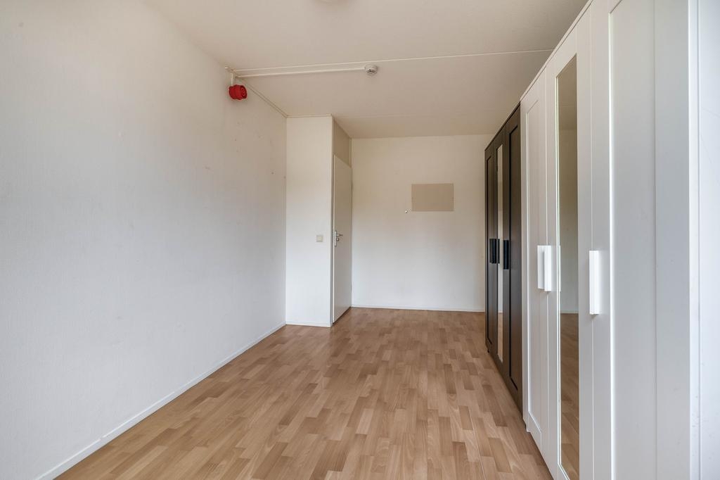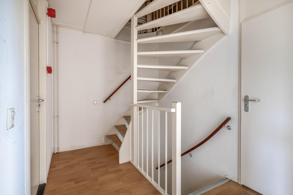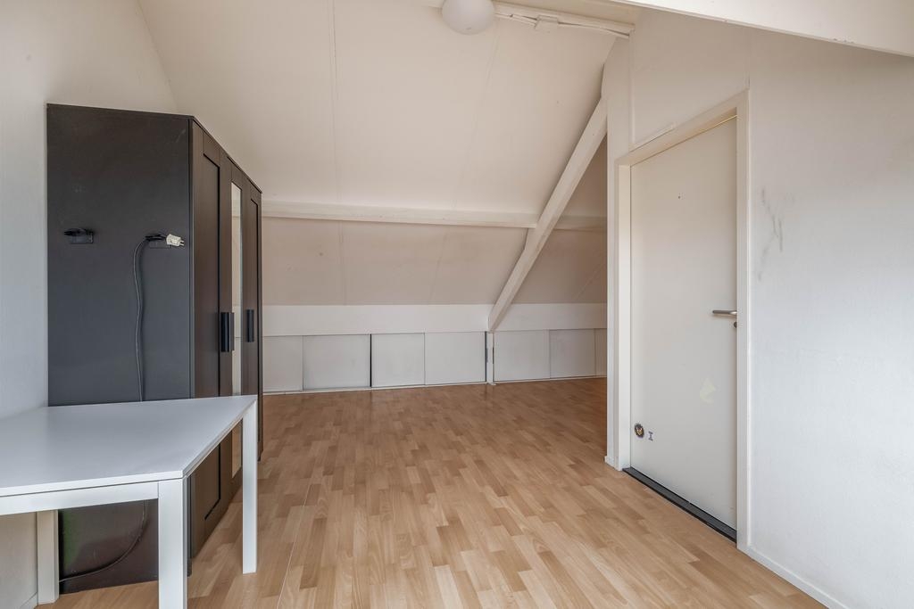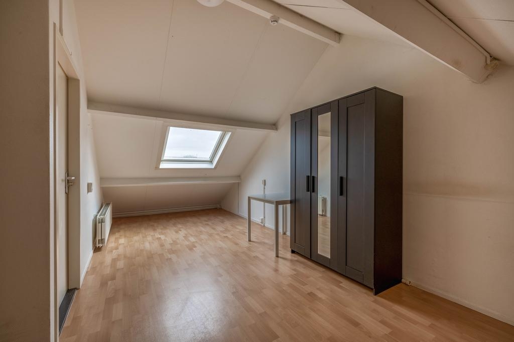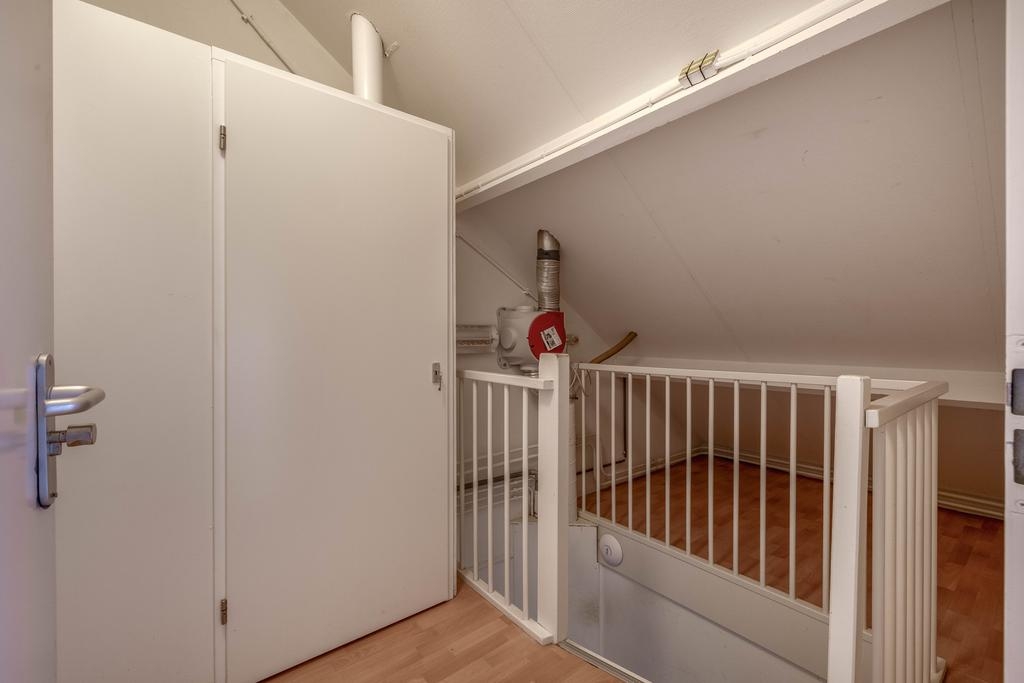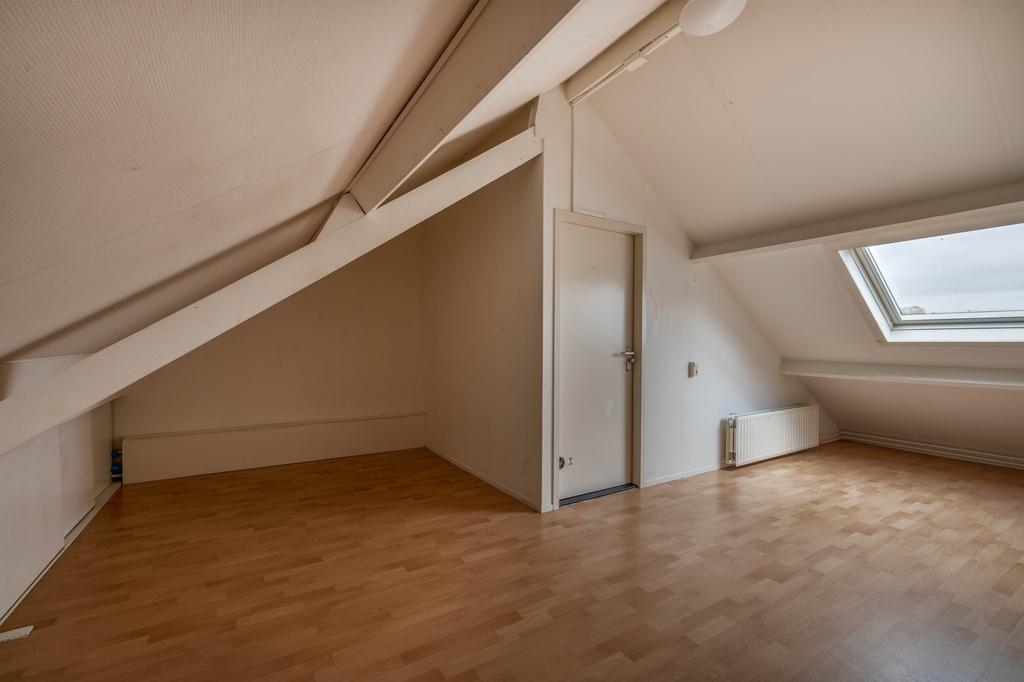 De tweede verdieping is verrassend ruim en herbergt de vierde slaapkamer. Dankzij het grote Velux dakraam komt hier veel daglicht binnen, wat deze kamer een prettige plek maakt voor bijvoorbeeld een ouderslaapkamer, studio of thuiskantoor. Op de overloop is een vaste kast met daarin de cv-combiketel (Remeha HR, 2017) en de mechanische ventilatie-unit.