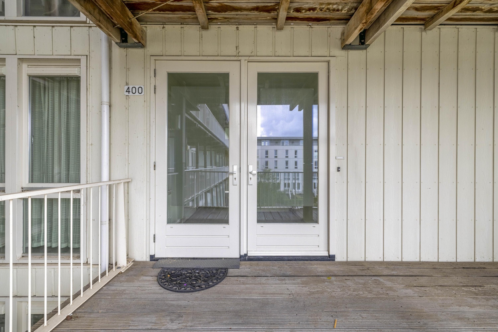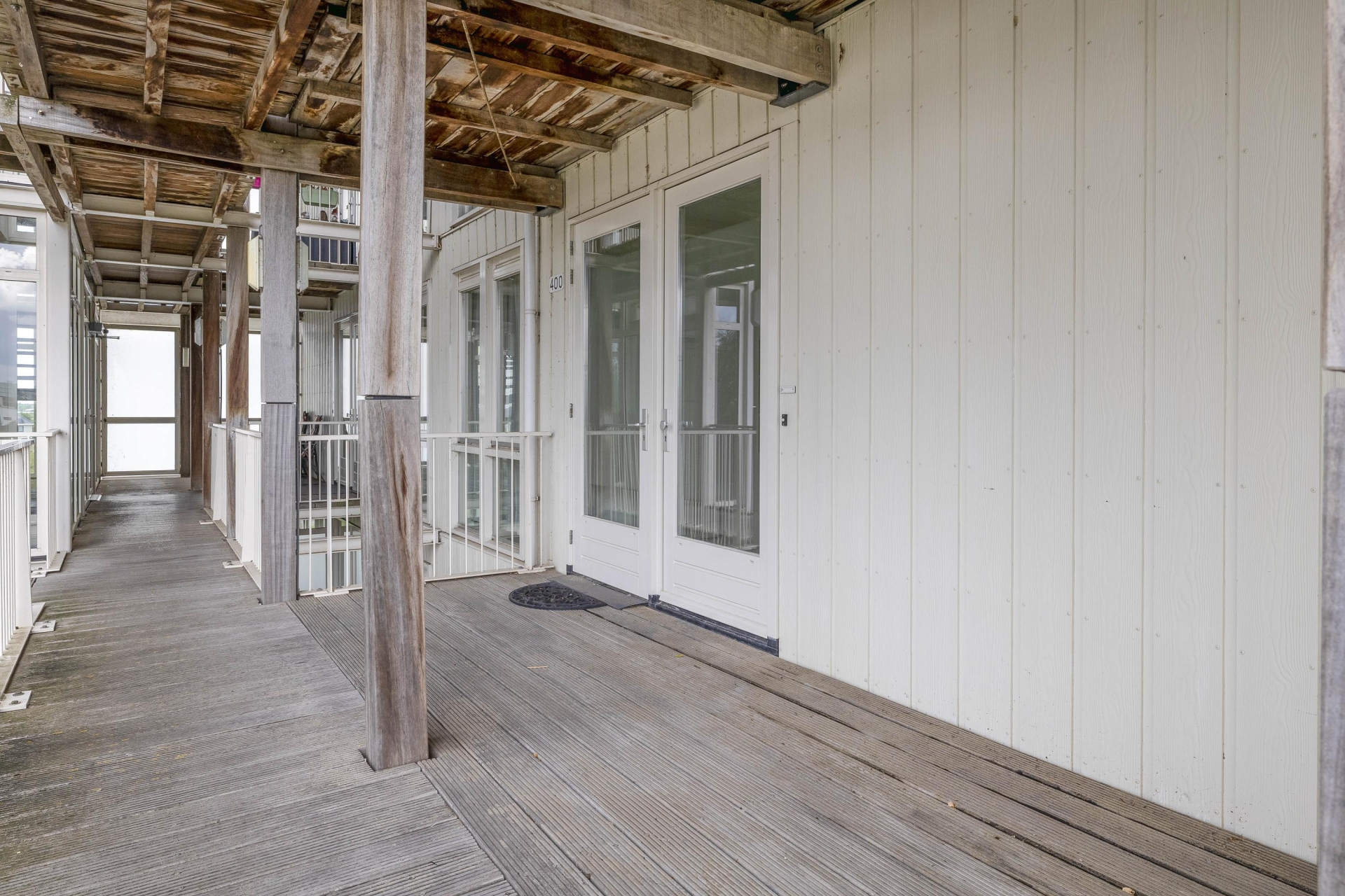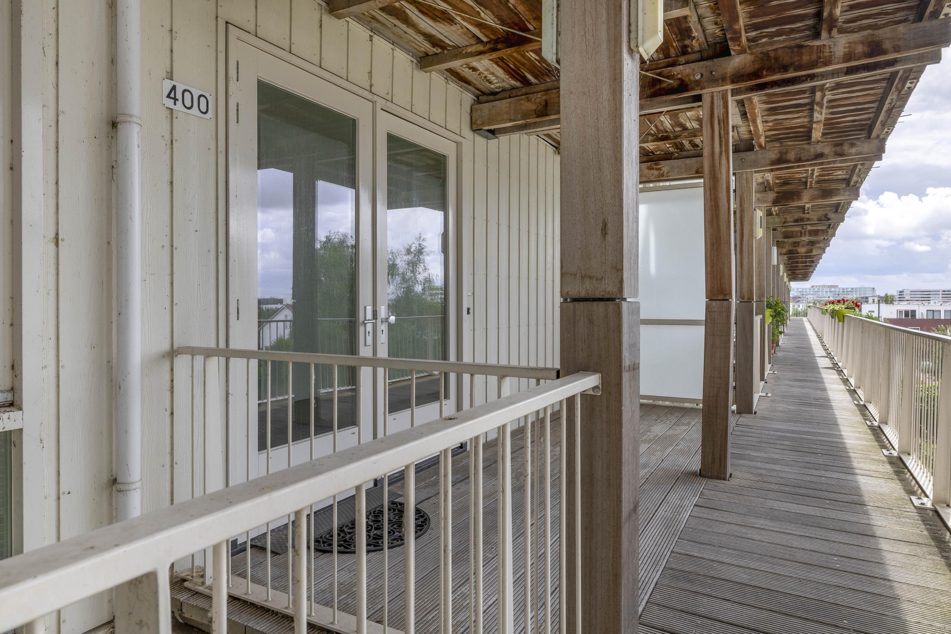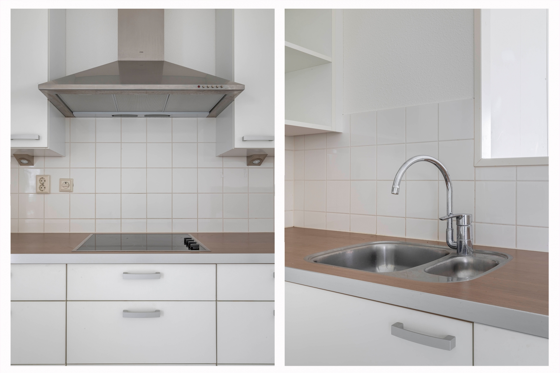 Entree, ruime hal met toegang tot 2 slaapkamers, de badkamer, een inpandige berging, het toilet, de meterkast en de woonkamer met open keuken. Er is een ruime woonkamer met complete open keuken aanwezig. Deze hebben samen een oppervlakte van bijna 50 m²! De keuken is voorzien van diverse inbouwapparatuur en biedt ruimte genoeg voor een royale eettafel. Vanuit de woonkamer is er middels een schuifpui een Frans balkon. Vanaf hier is er een waanzinnig uitzicht over het Rietveldpark!
