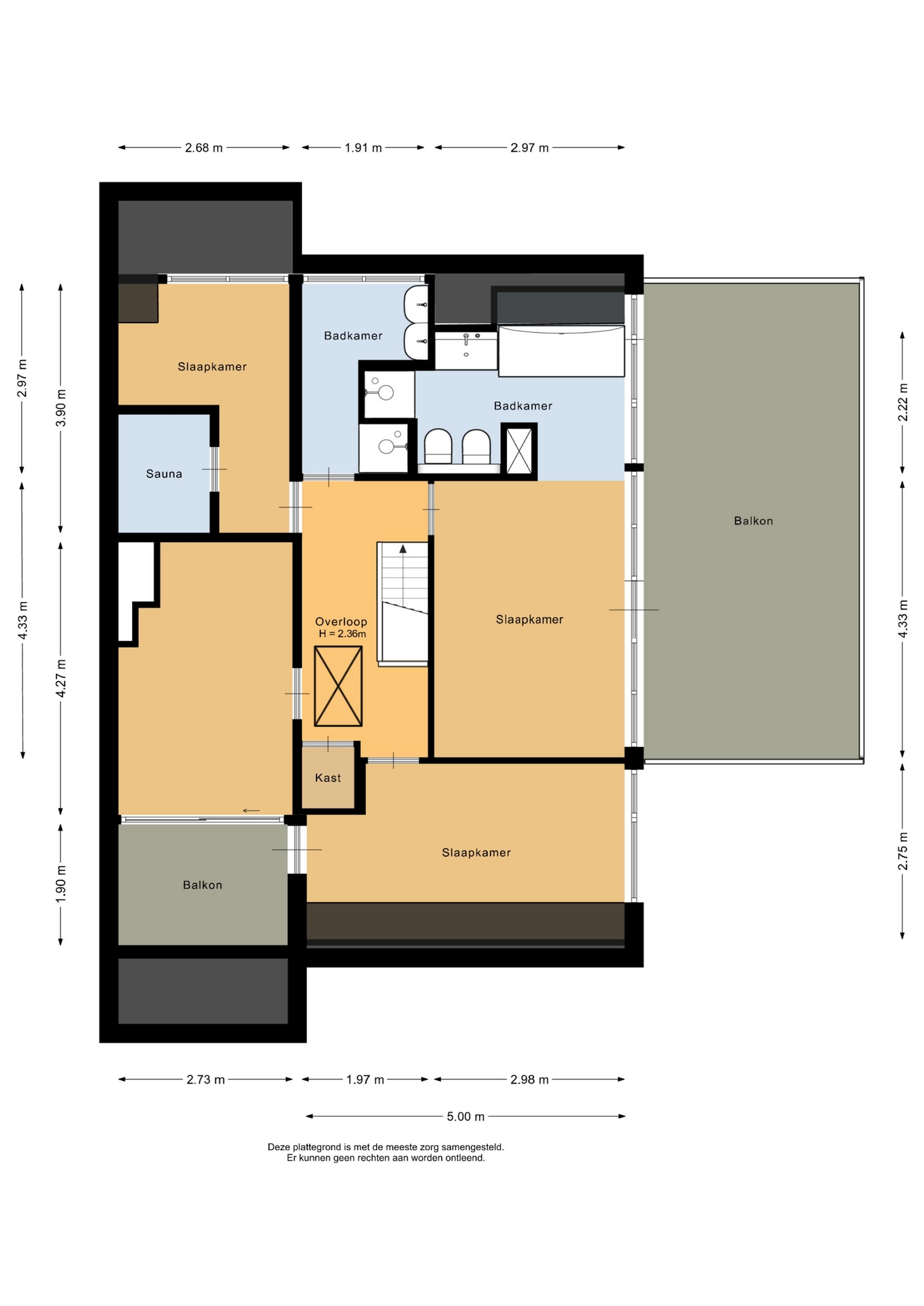 “Deze informatie is door ons met de nodige zorgvuldigheid samengesteld. Onzerzijds wordt echter geen enkele aansprakelijkheid aanvaard voor enige onvolledigheid, onjuistheid of anderszins, dan wel de gevolgen daarvan. Alle opgegeven maten en oppervlakten zijn indicatief.”