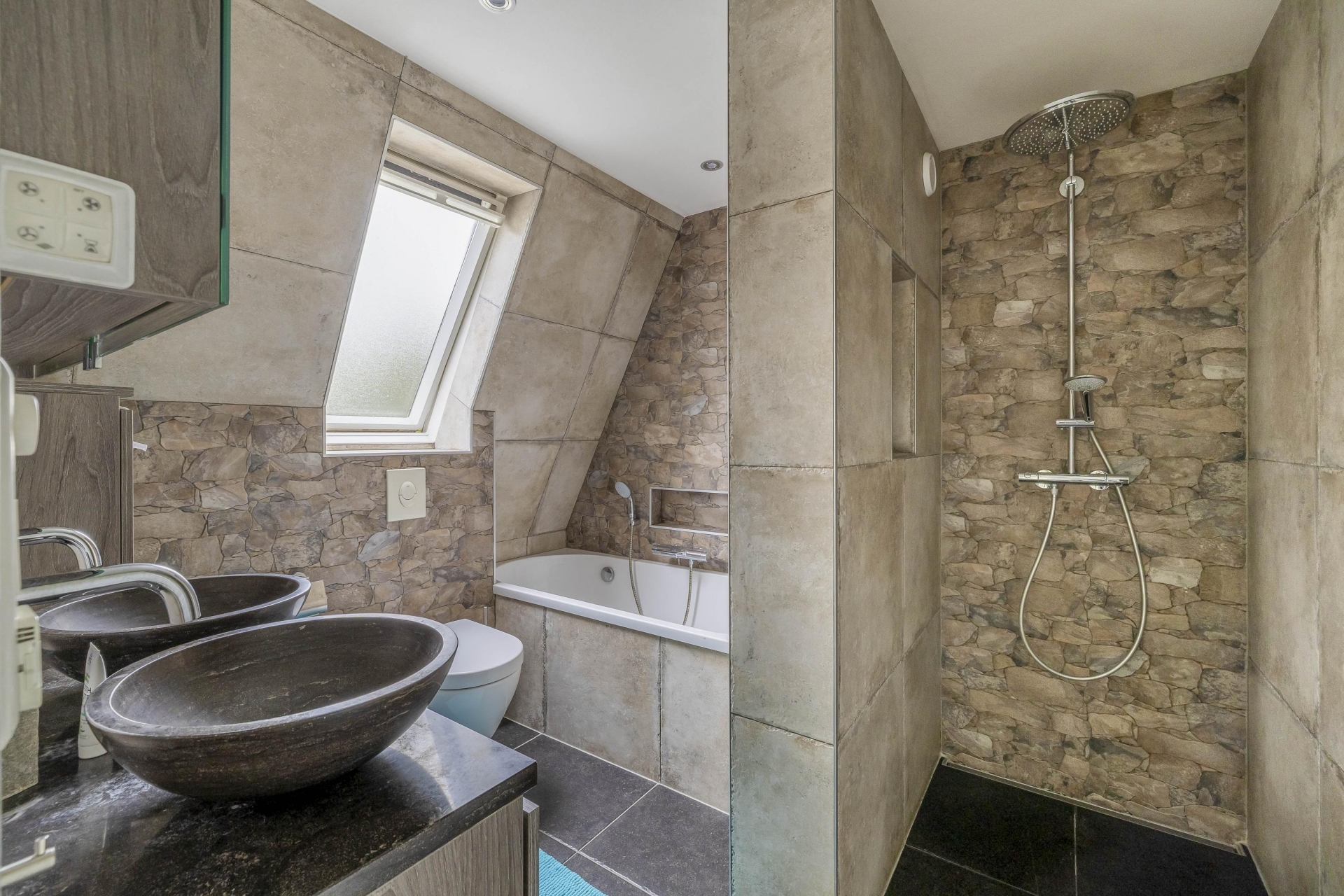 De badkamer (6.4m²) dateert uit 2016 en volledig betegeld en voorzien van een dakraam.