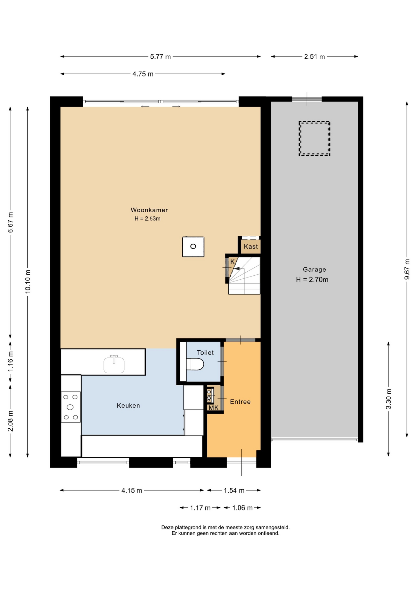 De tuingerichte woonkamer meet 6.67x5.77 / 38.5m² is is voorzien van een schuifpui naar de achtertuin.