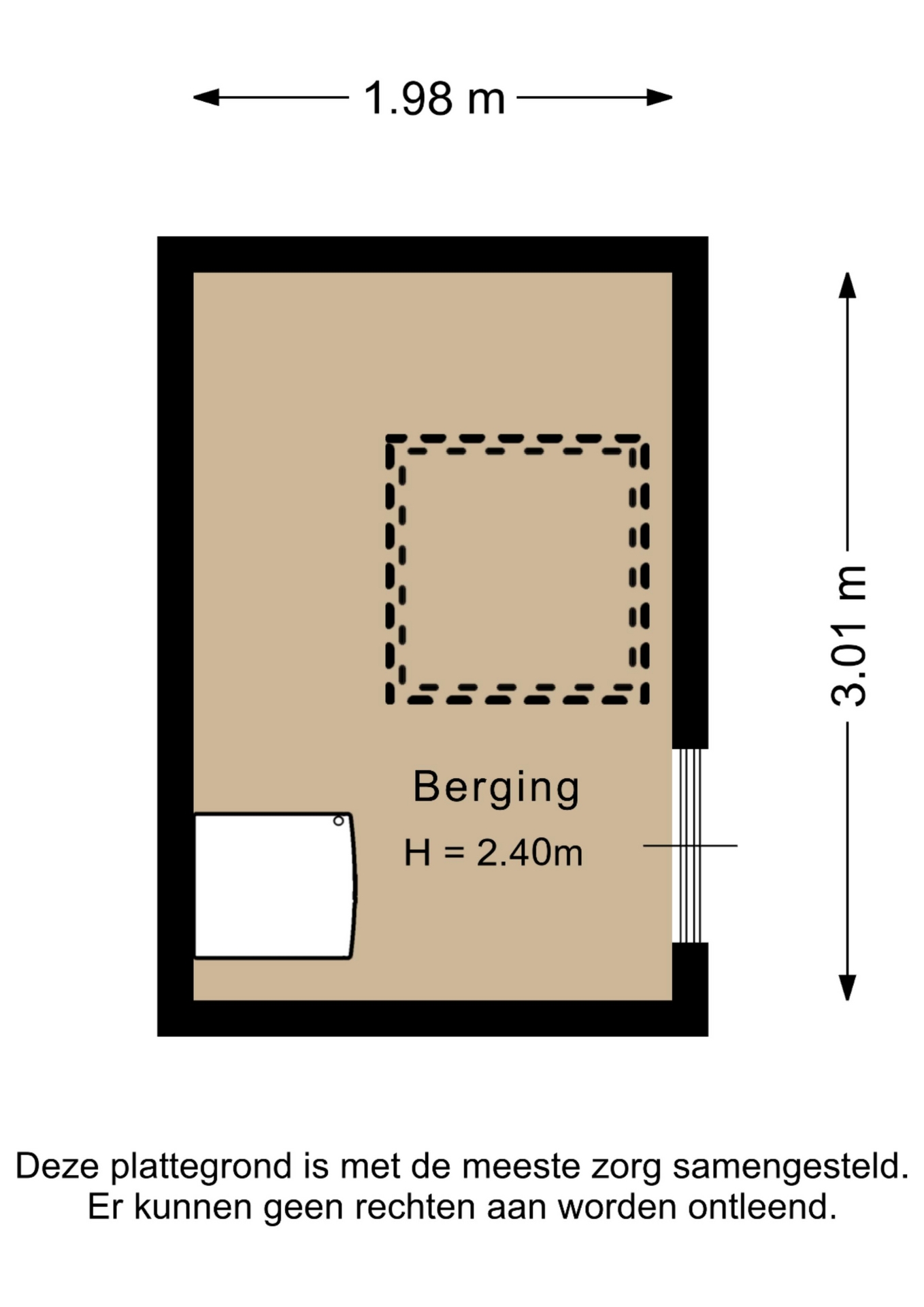 Hier bevind zich een vrijstaande stenen berging (ca.6m²) met elektra en een buitenkraan.