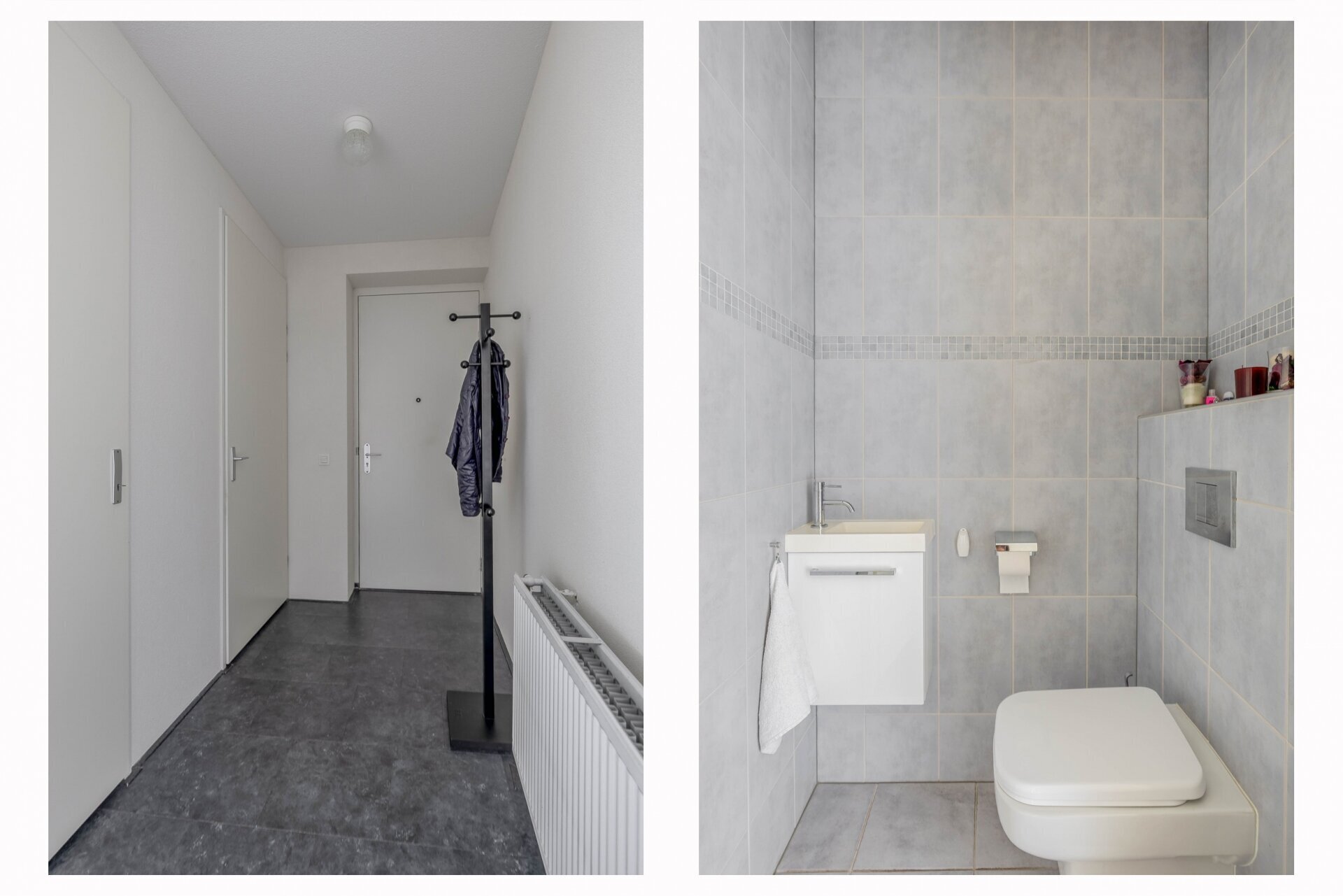 De ruime badkamer beschikt over een inloopdouche met hand- én regendouche, een ligbad, een dubbele wastafel met meubel en een designradiator. In de technische ruimte vind je de aansluitingen voor wasmachine en droger, evenals de opstelplaats van de cv-ketel en de WTW-installatie. Het aparte toilet is uitgerust met een hangend closet, fonteintje en toiletmeubel.