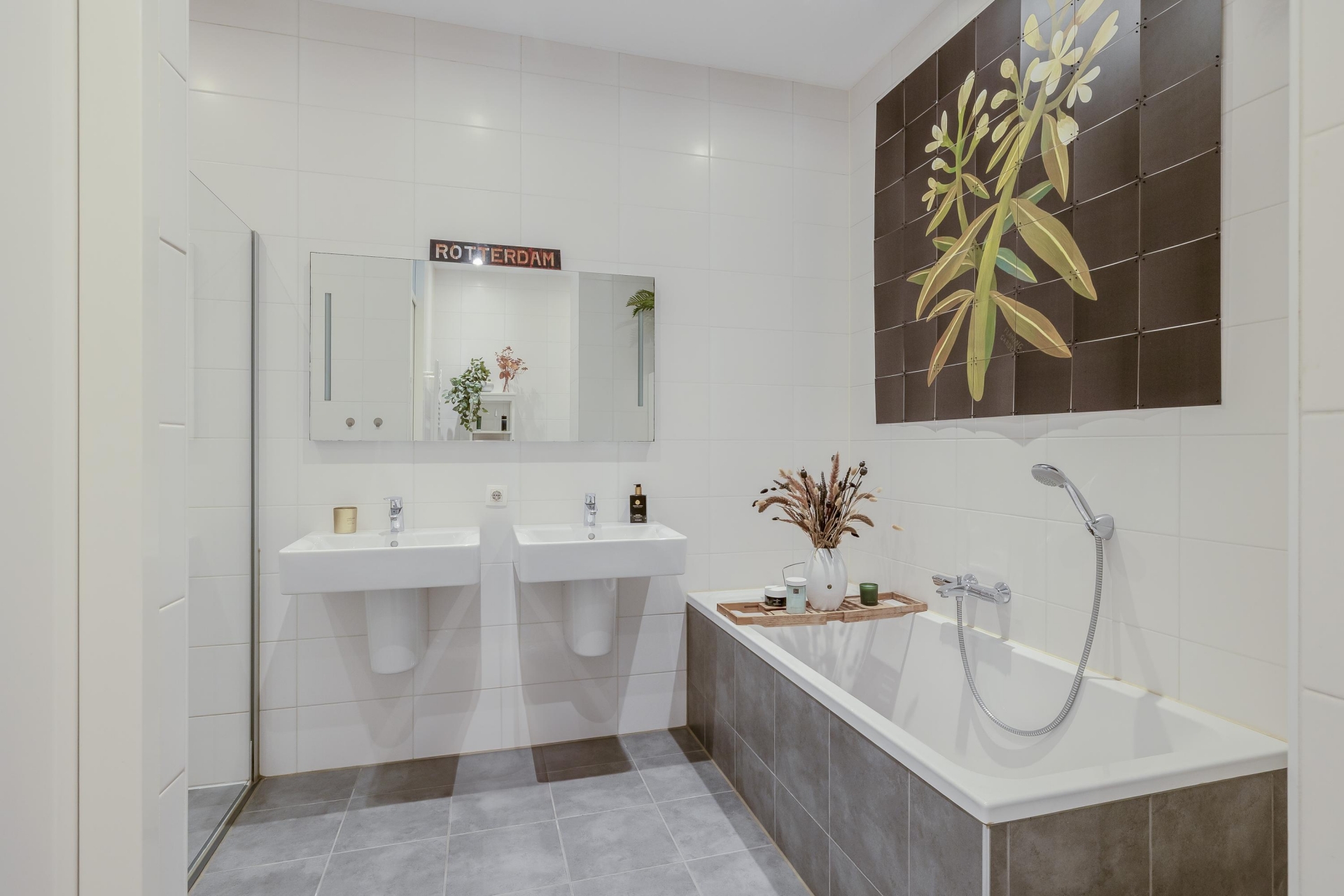 - Strakke badkamer met inloopdouche en vrijstaand bad