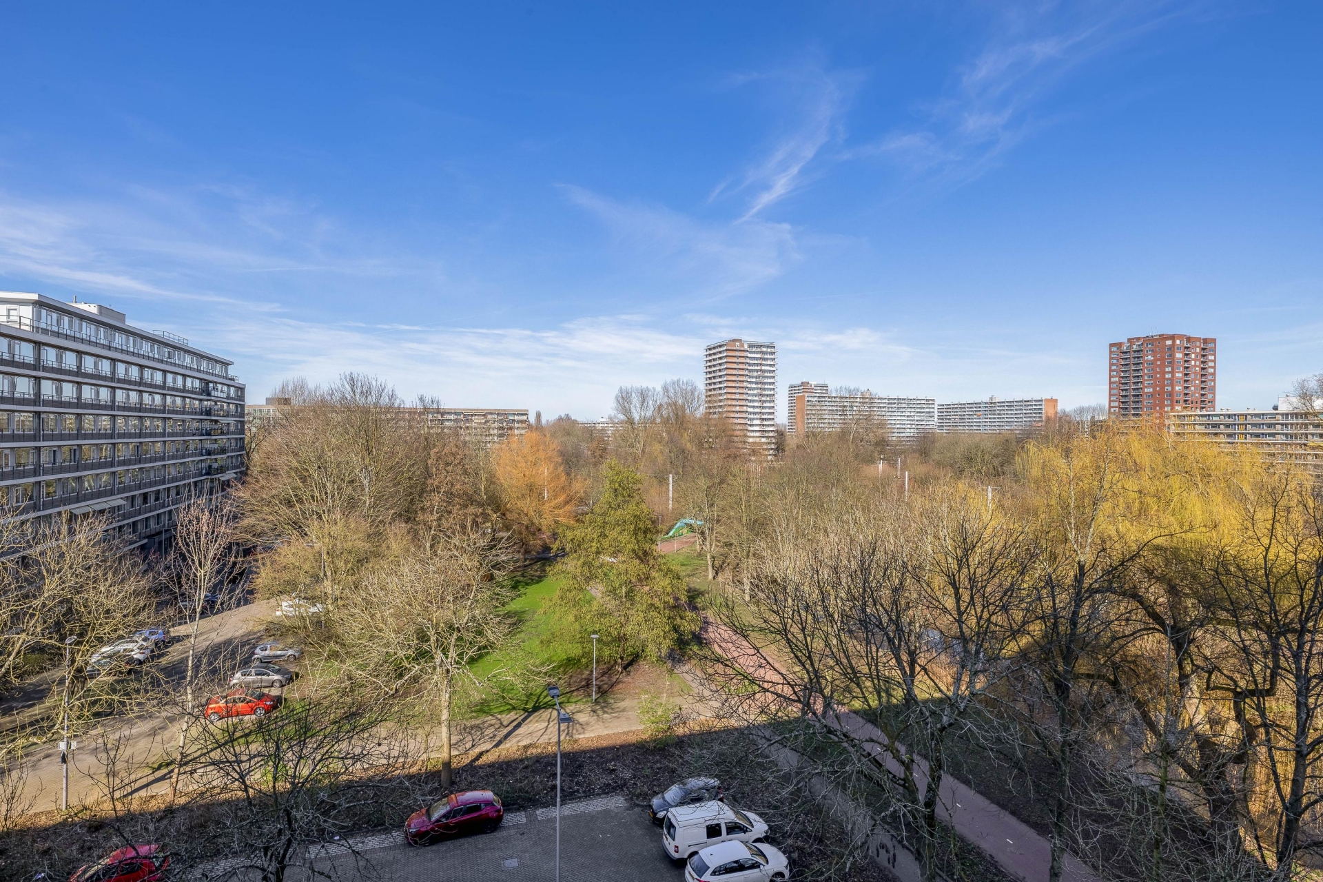 Je woont hier in een groene woonomgeving met veel bomen en plantsoenen. Vanuit het appartement kijk je vrij weg zonder directe inkijk van overburen. Tegelijkertijd liggen winkels, scholen en openbaar vervoer op korte afstand. Zo combineer je hier rustig wonen met alle dagelijkse voorzieningen binnen handbereik.
