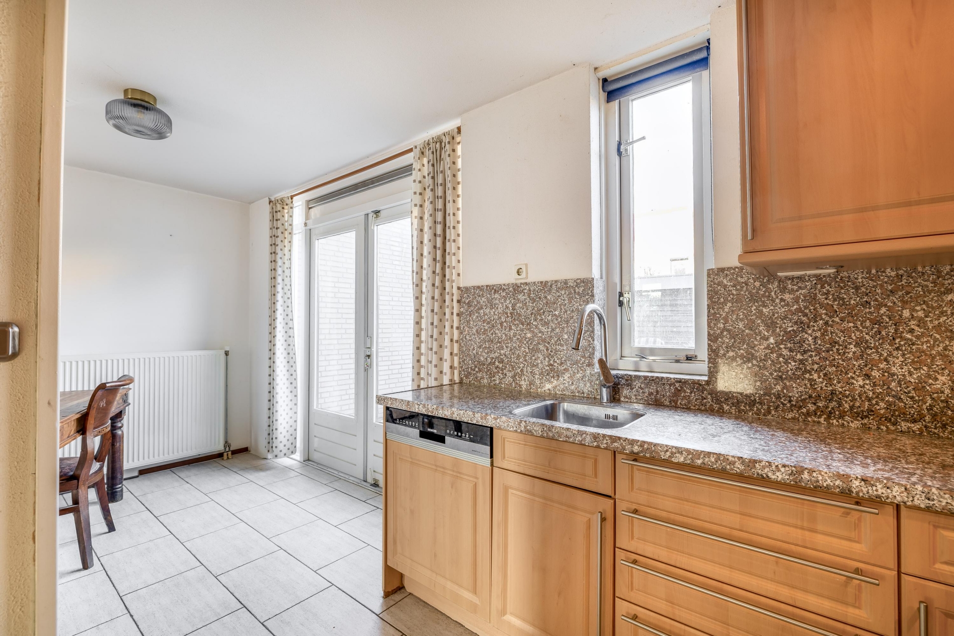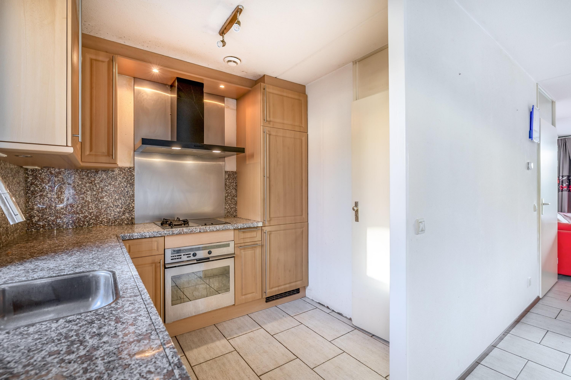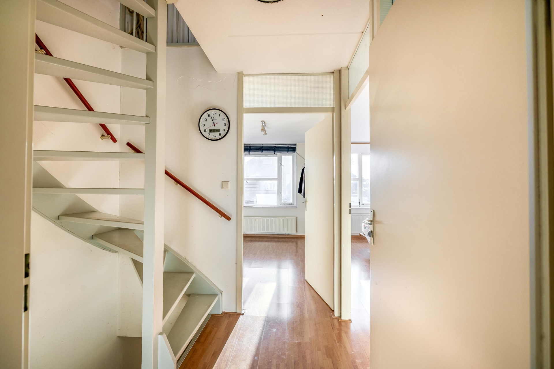 Vanuit de voortuin betreedt u de woning. De entree biedt toegang tot de meterkast, het toilet met fonteintje, de trapopgang en de doorzonkamer. De lichte doorzonkamer biedt volop mogelijkheden om een ruime woonkamer en eetkamer te creëren. De aangrenzende open keuken is uitgerust met diverse inbouwapparatuur, waaronder een vaatwasser, oven, keramische tweepits kookplaat met wokbrander, afzuigschouw en koel-vriescombinatie.