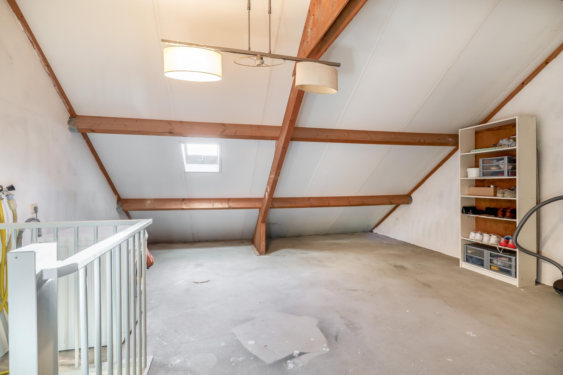 De zolderverdieping biedt volop mogelijkheden voor het opbergen van spullen. Daarnaast is het eenvoudig om hier één of twee slaapkamers te realiseren door het plaatsen van dakkapellen. In deze ruimte bevinden zich tevens de wasmachineaansluiting en de cv-ketel.