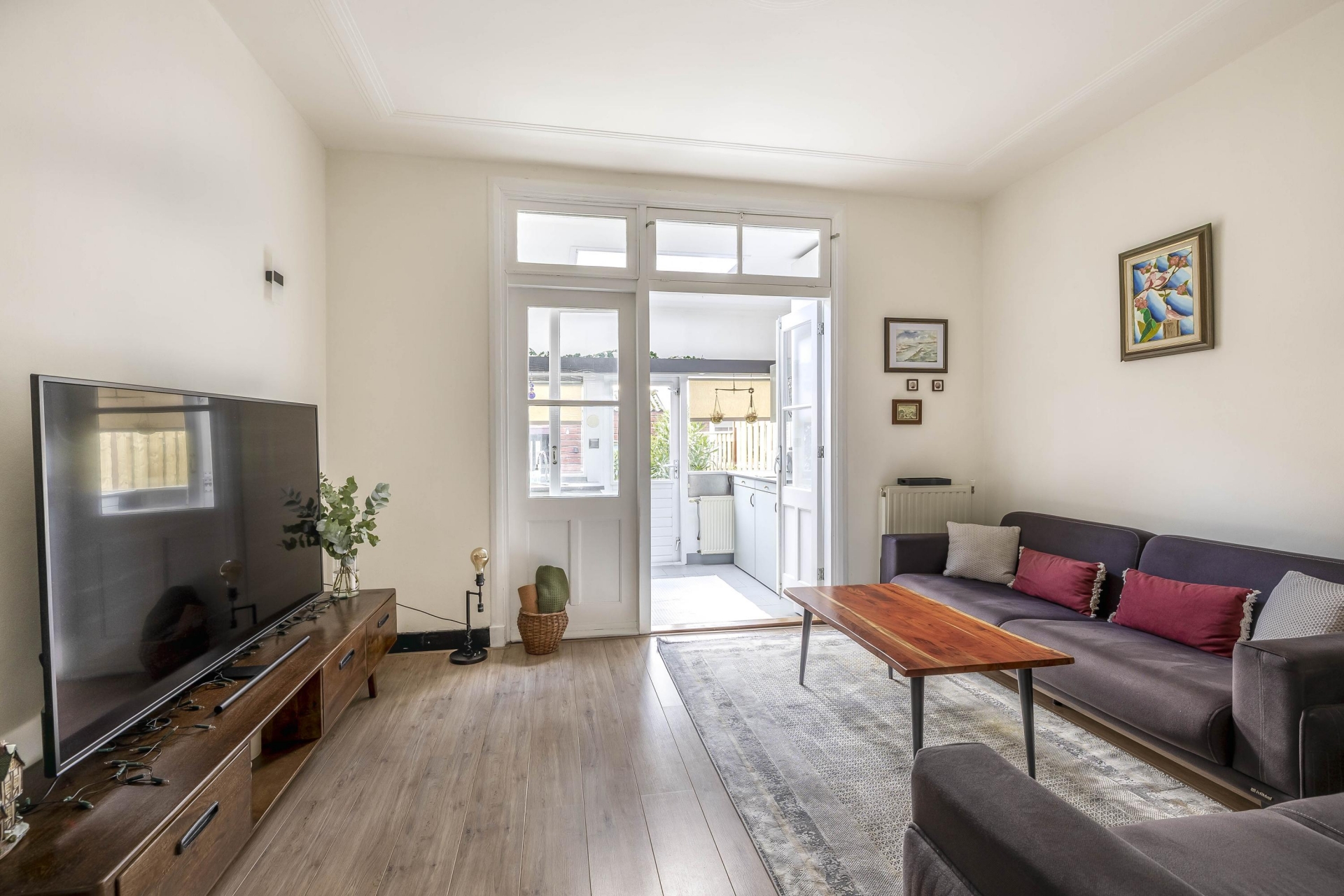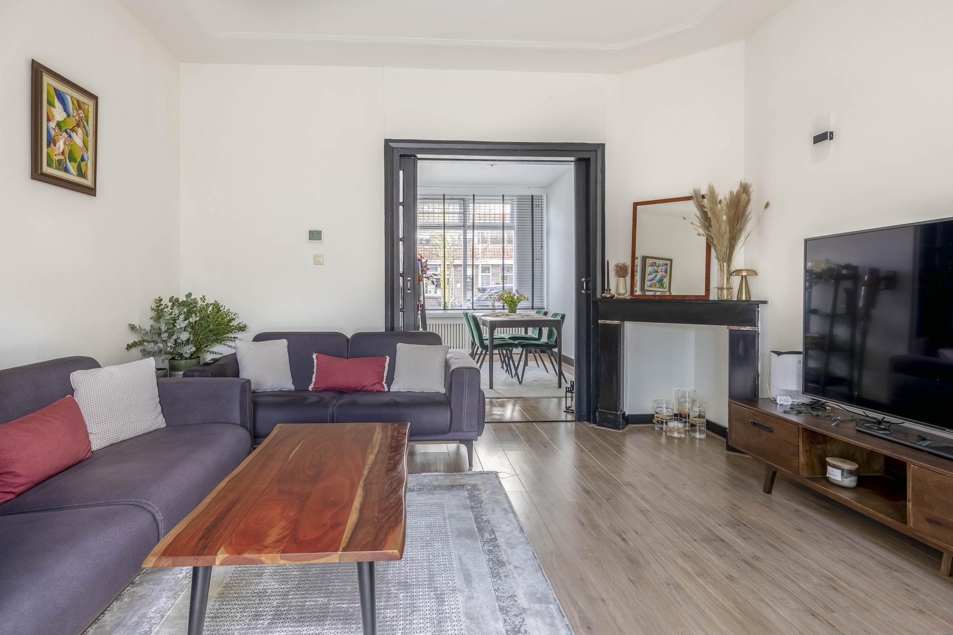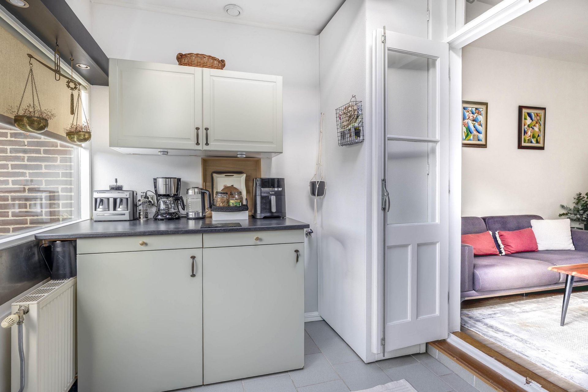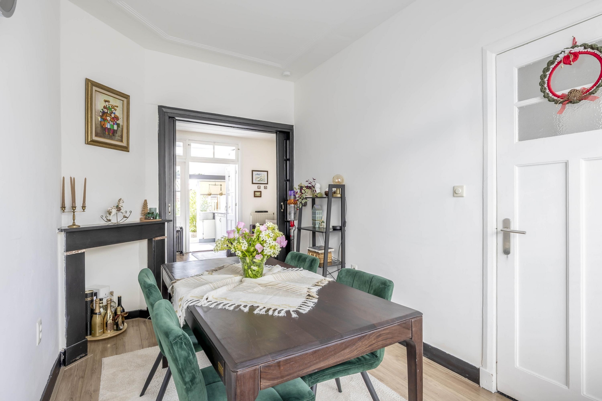Welkom in deze charmante woning, waar authenticiteit en comfort prachtig samenkomen. De sfeervolle woonkamer heeft een en-suite indeling waardoor er een mooie balans tussen openheid en geborgenheid is. De ruimtes lopen vloeiend in elkaar over, maar kunnen ook eenvoudig worden gescheiden voor extra privacy of rust. De karakteristieke details, zoals hoge plafonds, sierlijsten en schouwen, versterken de warme en huiselijke sfeer. De keuken in de uitbouw is ruim opgezet en voorzien van inbouwapparatuur.