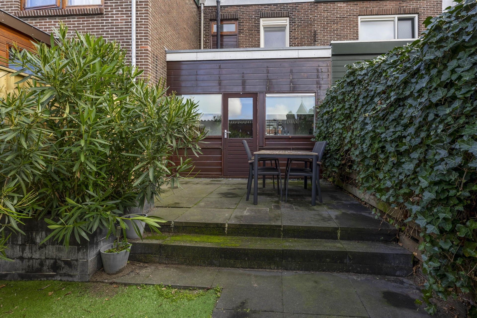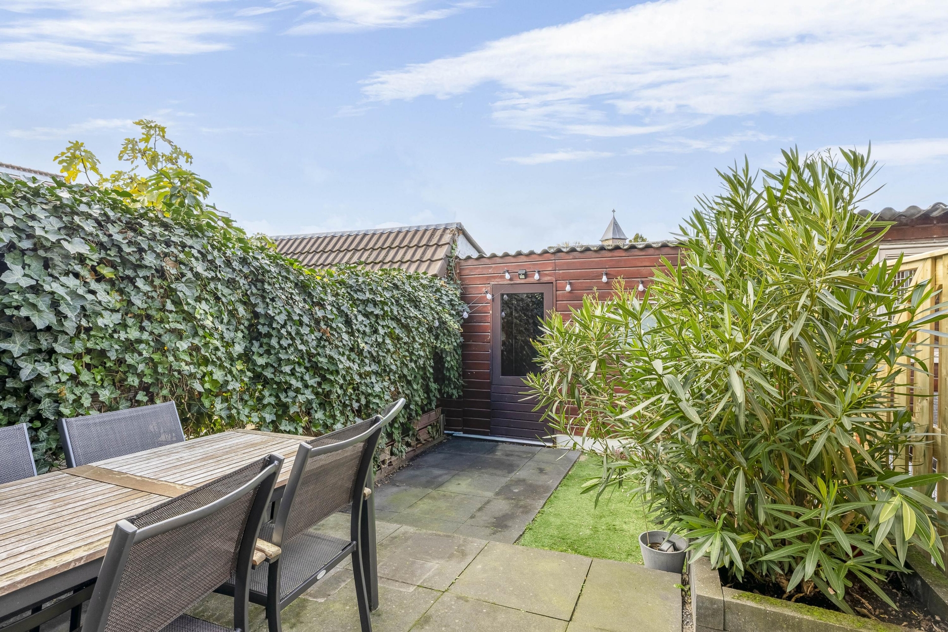 Buiten geniet je van de achtertuin op het noordwesten. Je hebt hier zon tot in de avonduren. Een fijne plek voor een gezellige barbecue met vrienden. De praktische berging is ruim en heeft een achterom.