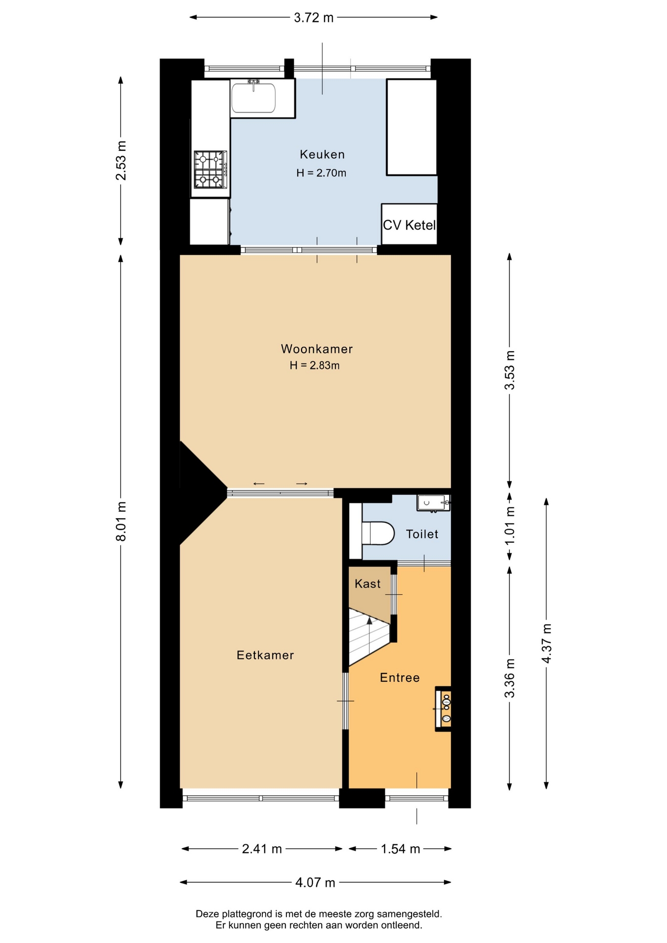 “Deze informatie is door ons met de nodige zorgvuldigheid samengesteld. Onzerzijds wordt echter geen enkele aansprakelijkheid aanvaard voor enige onvolledigheid, onjuistheid of anderszins, dan wel de gevolgen daarvan. Alle opgegeven maten en oppervlakten zijn indicatief.”