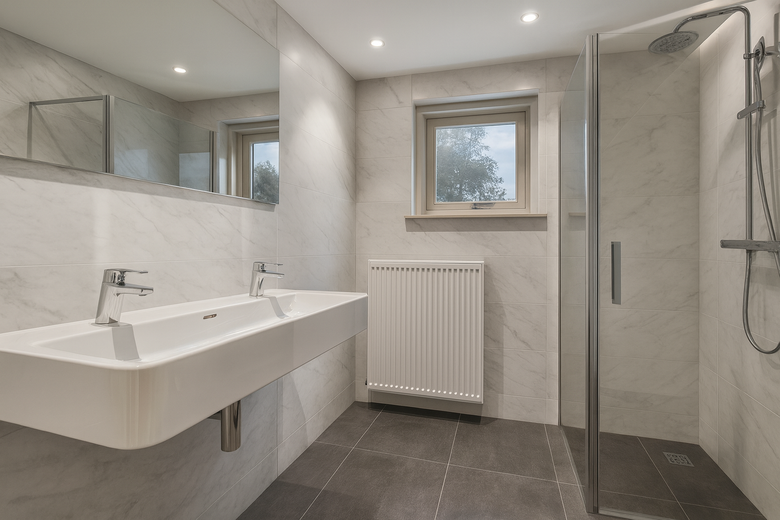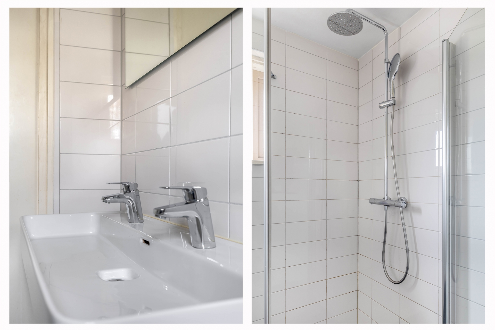 Op de eerste verdieping bevinden zich vier slaapkamers van verschillend formaat. De grootste slaapkamer ligt aan de achterzijde en biedt ruimte voor een groot tweepersoonsbed en een royale kledingkast. De overige drie kamers zijn ideaal als kinderkamer, logeerkamer of werkkamer – net wat je nodig hebt. De badkamer is netjes doch eenvoudig afgewerkt met een ruime inloopdouche, een dubbele wastafel en modern tegelwerk in neutrale kleuren.