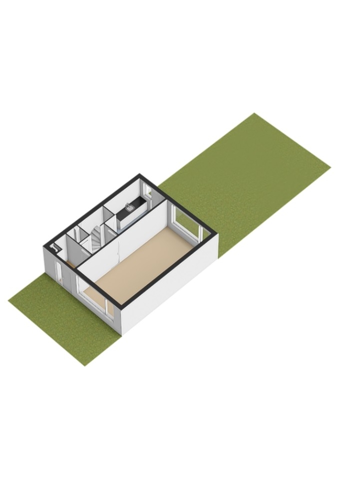 De woonkamer is licht en ruim en kijkt uit op het groen aan de voorzijde. Door de grote raampartijen valt het daglicht mooi naar binnen en ontstaat er een prettige sfeer in de leefruimte. Aan de achterzijde bevindt zich de keuken, met directe toegang tot de tuin – ideaal op een zomerse dag of als de kinderen lekker buiten willen spelen. De tuin is verzorgd aangelegd met een combinatie van groen en bestrating, waardoor je hier met weinig onderhoud toch veel plezier van hebt.