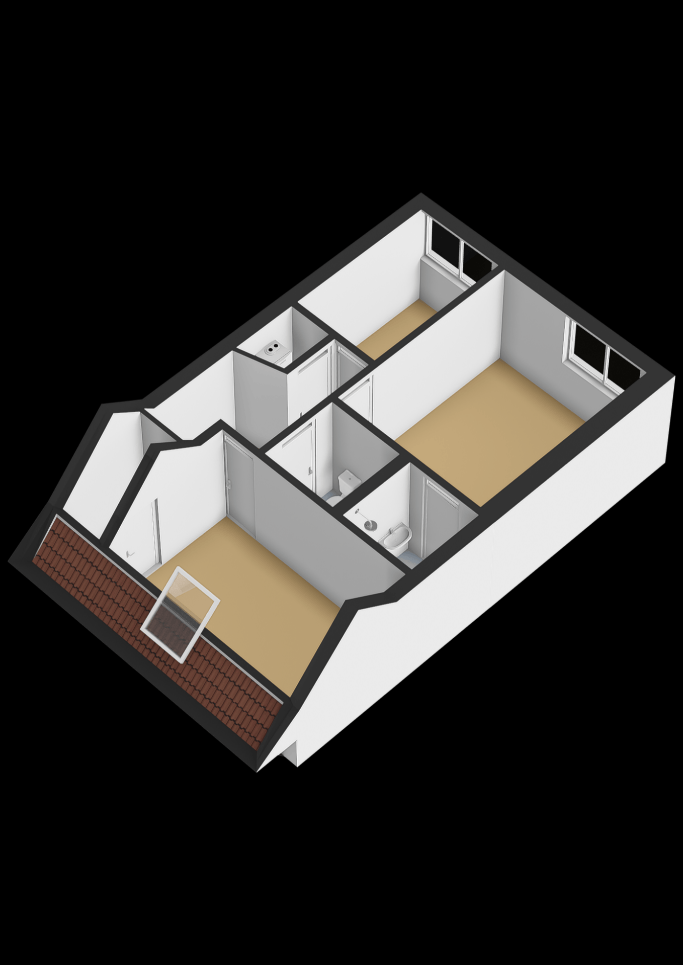 Op de bovenverdieping vind je drie slaapkamers, allemaal met voldoende daglicht. De grootste kamer is ideaal als master bedroom, terwijl de andere twee perfect zijn voor kinderen, logees of een werkkamer. De badkamer is functioneel ingedeeld en biedt de basis voor wie wil moderniseren. Ook hier geldt: een goede basis met volop ruimte om naar eigen inzicht in te richten. De overloop en berging zorgen voor extra praktische opbergruimte.