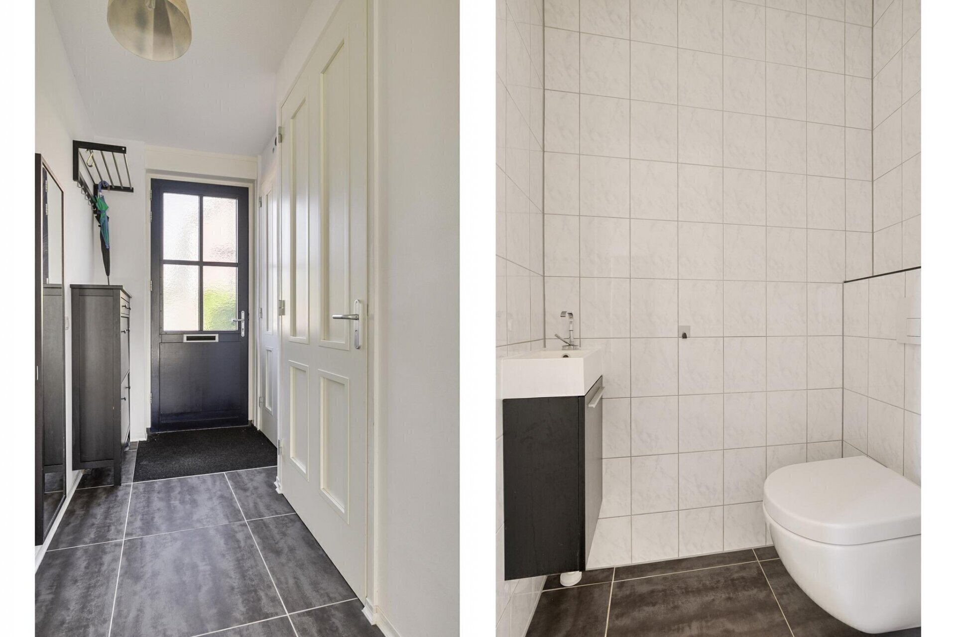 Entree, hal, meterkast, volledig betegelde toiletruimte met hangend closet en fonteintje en de trapopgang naar de bovengelegen verdiepingen! Vanuit de hal heeft u toegang de verrassend ruime woonkamer. Deze woonkamer van welgeteld ca. 34m2 is voorzien van een keurige tapijtvloer en beschikt over openslaande deuren naar de achtertuin! Aan de voorzijde van de woning bevindt zich de keuken. Deze ruime, hoek-opgestelde keuken is uitgevoerd met een witte kleurstelling en beschikt over diverse inbouwapparatuur te weten; inductie kookplaat, afzuigkap, vaatwasser, RvS spoelbak, oven en magnetron! Teruggelopen naar de woonkamer, kunt u middels de openslaande deuren begeven naar de achtergelegen tuin. Deze achtertuin is gelegen op het oosten en bied u, mede door de zijtuin een heerlijke plek zowel in de zon als de schaduw!