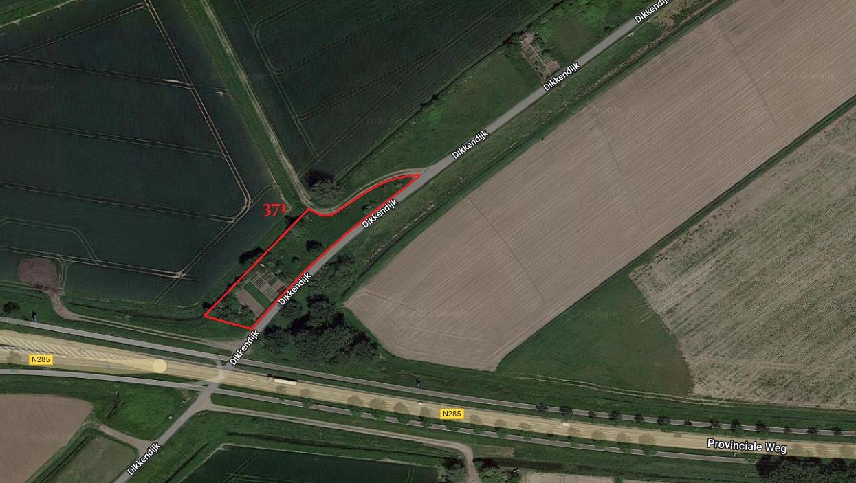 Getoond perceel, B 371, is gelegen ten noordwesten van de Dikkendijk en betreft een perceel ter grootte van 2.130 m2. De dijkgrond is bestemd voor hobbymatig agrarisch gebruik.