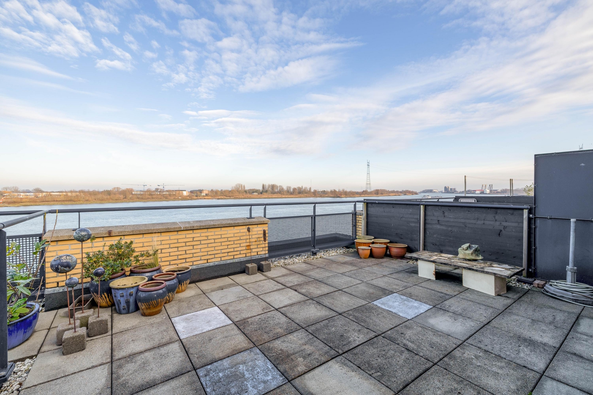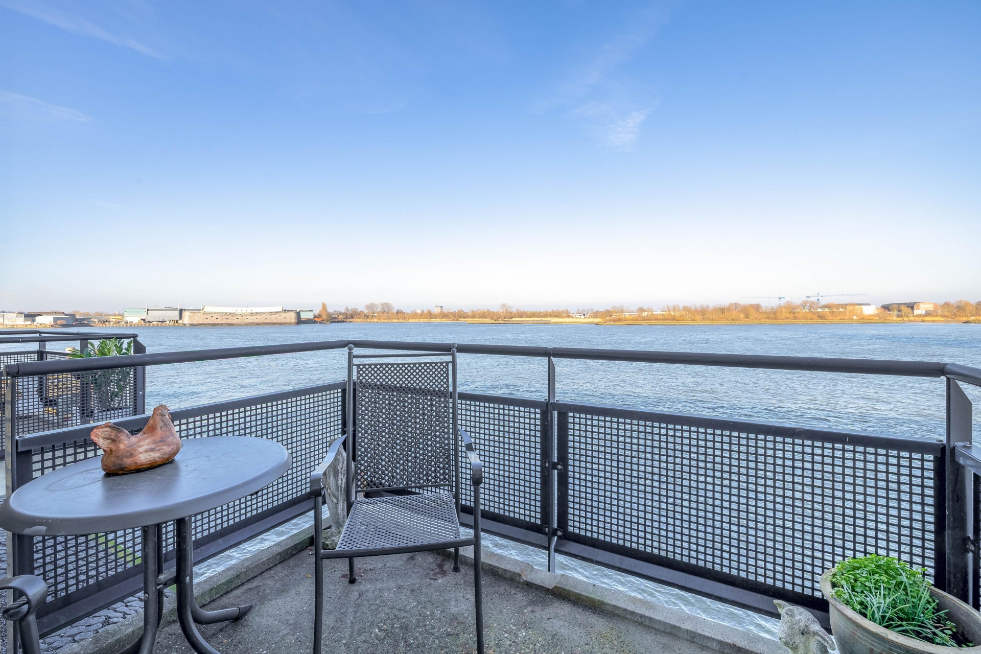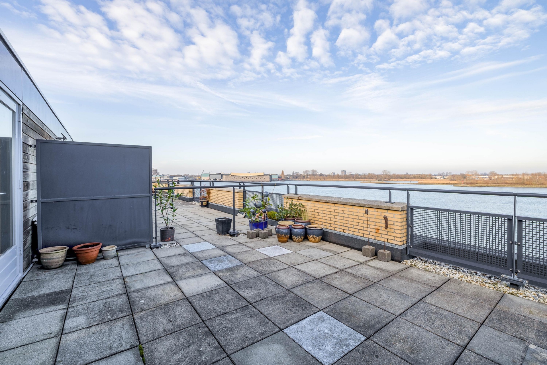 Wat deze woning écht bijzonder maakt, is het royale dakterras van maar liefst 27 m². Hier geniet je in alle privacy van het indrukwekkende uitzicht over het water. Daarnaast beschikt de woning over een balkon op het noordoosten, direct bereikbaar vanuit de woonkamer – de perfecte plek voor een kop koffie in de ochtendzon terwijl de schepen voorbijvaren.