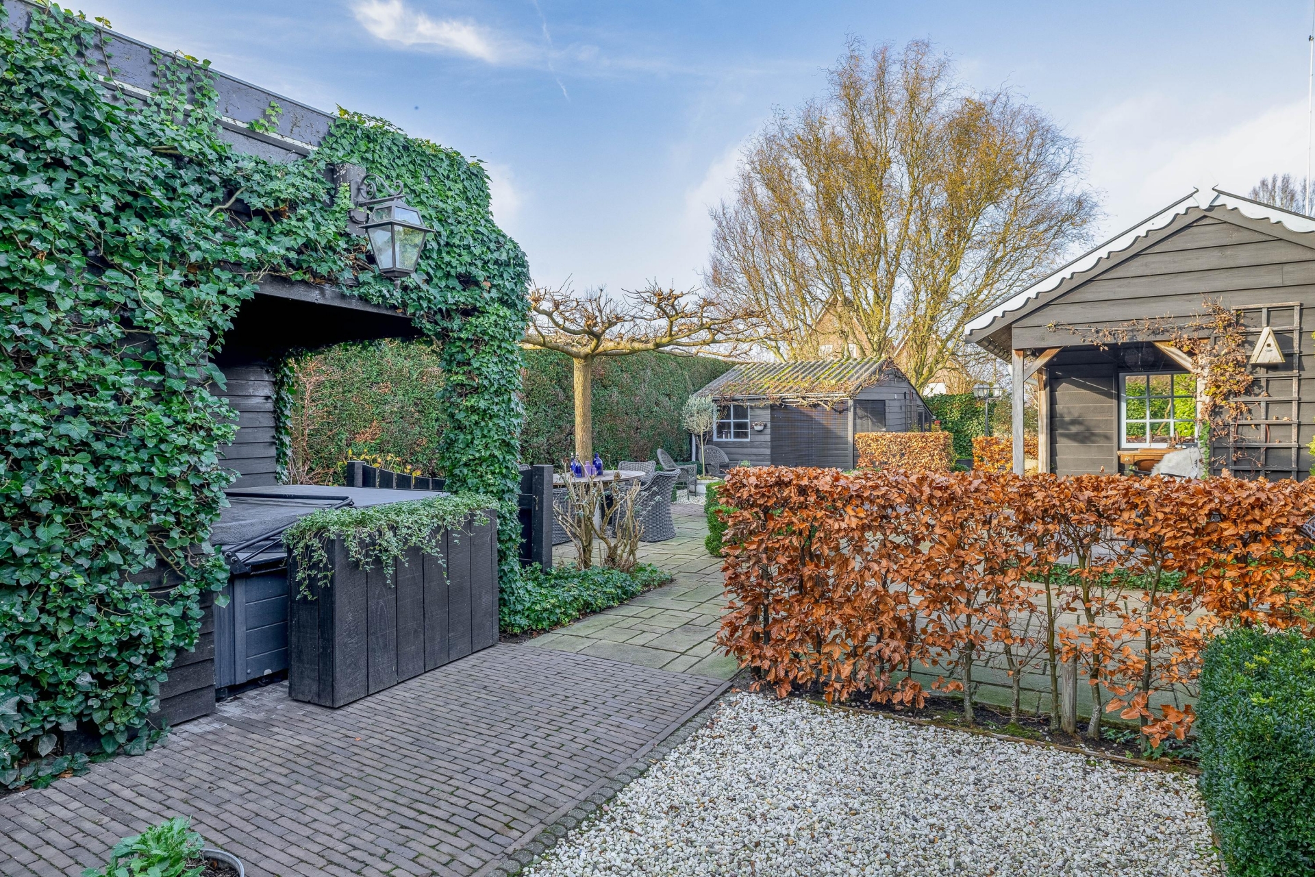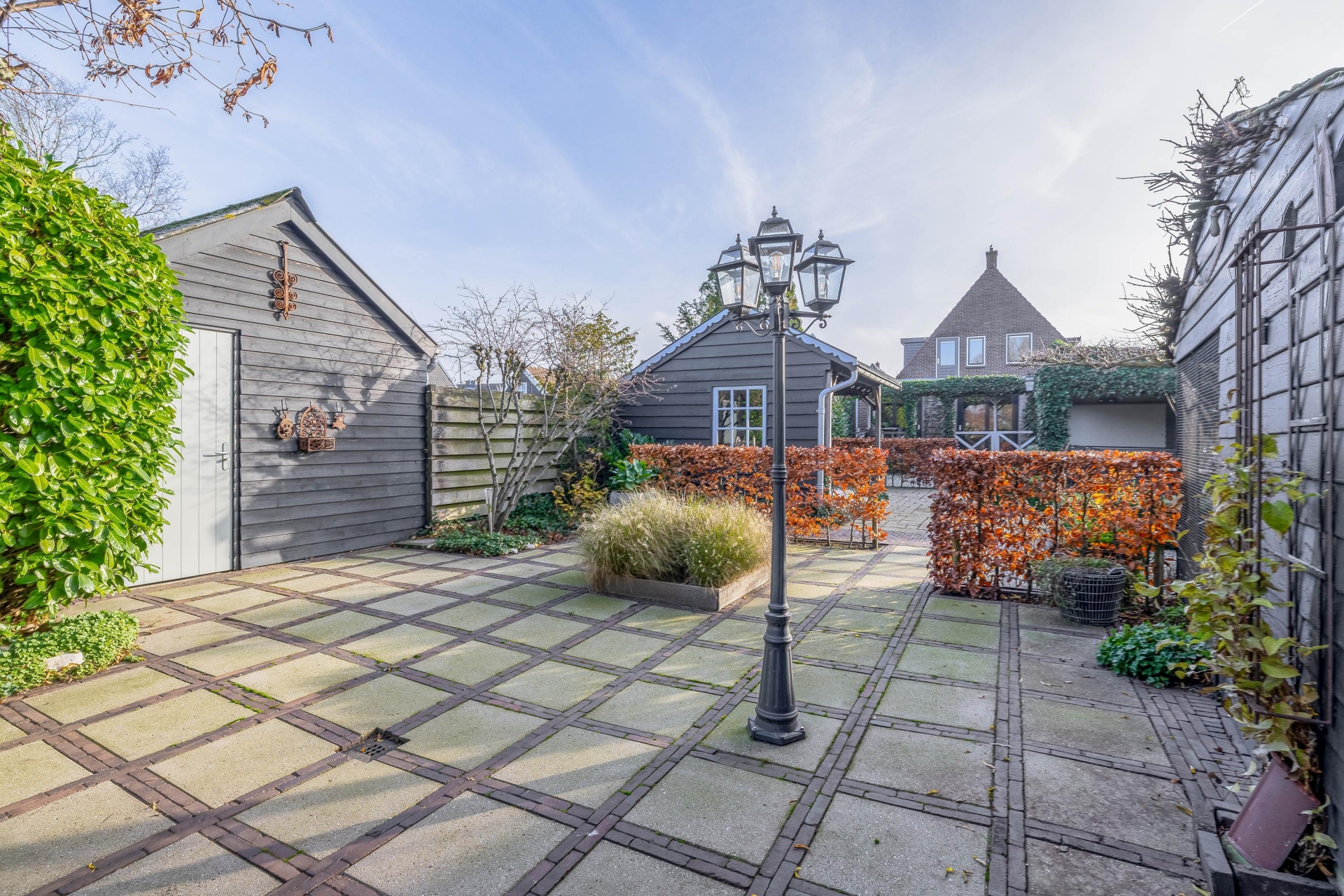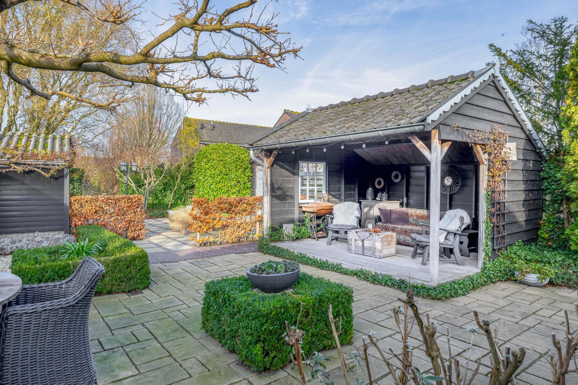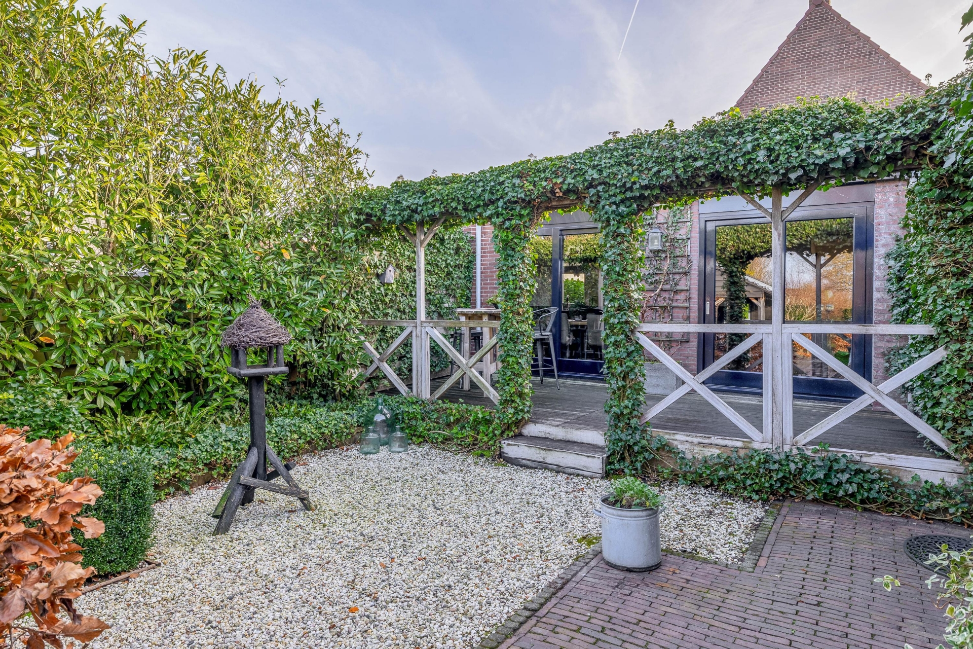 De fraai aangelegde tuin is absoluut een pluspunt. Door de ligging op een hoekperceel en het volwassen groen biedt de tuin optimale privacy. De achterzijde is voorzien van meerdere bergingen én een sfeervolle houten overkapping, perfect ingericht als buitenzit met een gezellige loungeset. Een ideale plek voor een zomeravond, een kop koffie in de ochtendzon of een barbecue met vrienden.