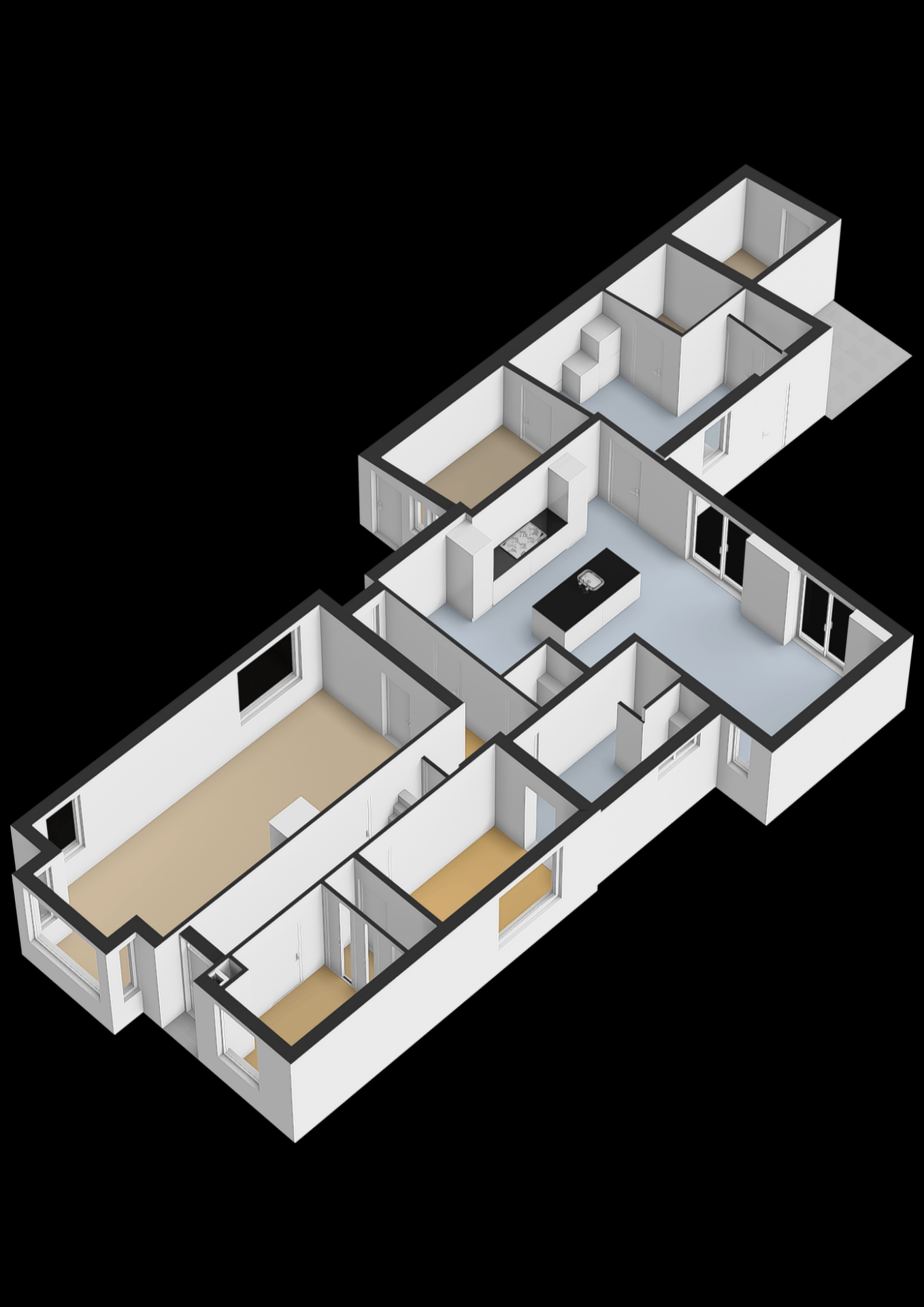 Daarnaast zijn er op de verdieping nog eens drie ruime slaapkamers, allemaal voorzien van ingebouwde kastruimte en prettig daglicht. Perfect voor een gezin, gastenverblijf of om thuis te werken.