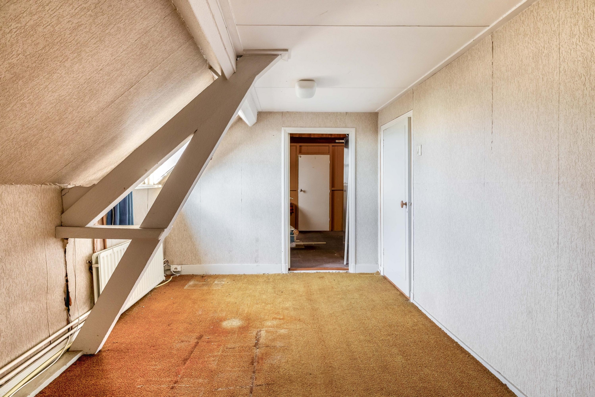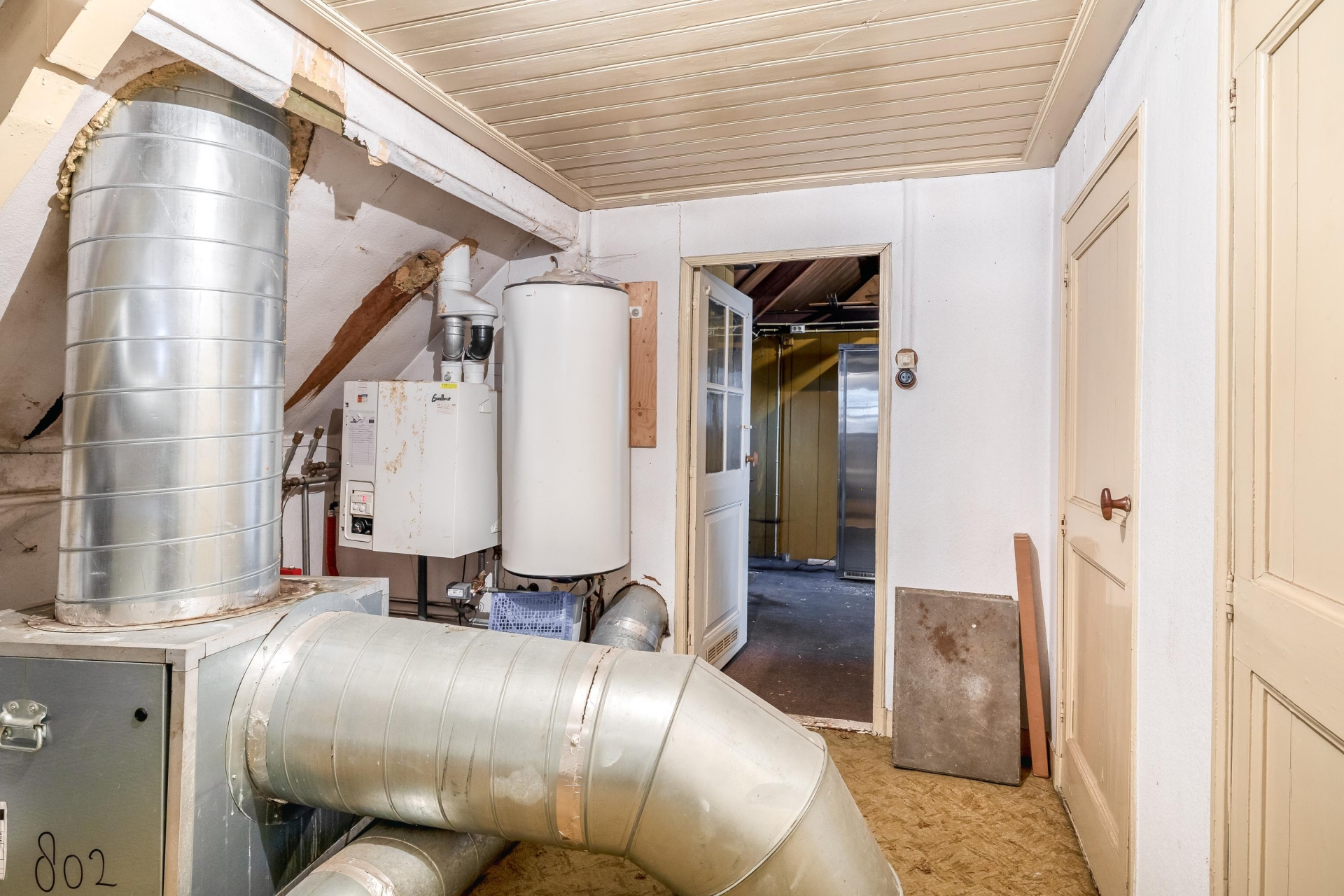 De huidige binnenruimte ademt nog de sfeer van het voormalige gebruik. Grote open vertrekken, meerdere ruimtes naast elkaar en een indeling die schreeuwt om herziening. Zie je hier al een royale woonkamer met leefkeuken? Of juist een speelse split-level indeling met werkruimte aan huis? Het kan allemaal. Met zeven kamers in totaal en vier mogelijke slaapkamers is er volop ruimte om te schuiven, te breken en opnieuw op te bouwen.