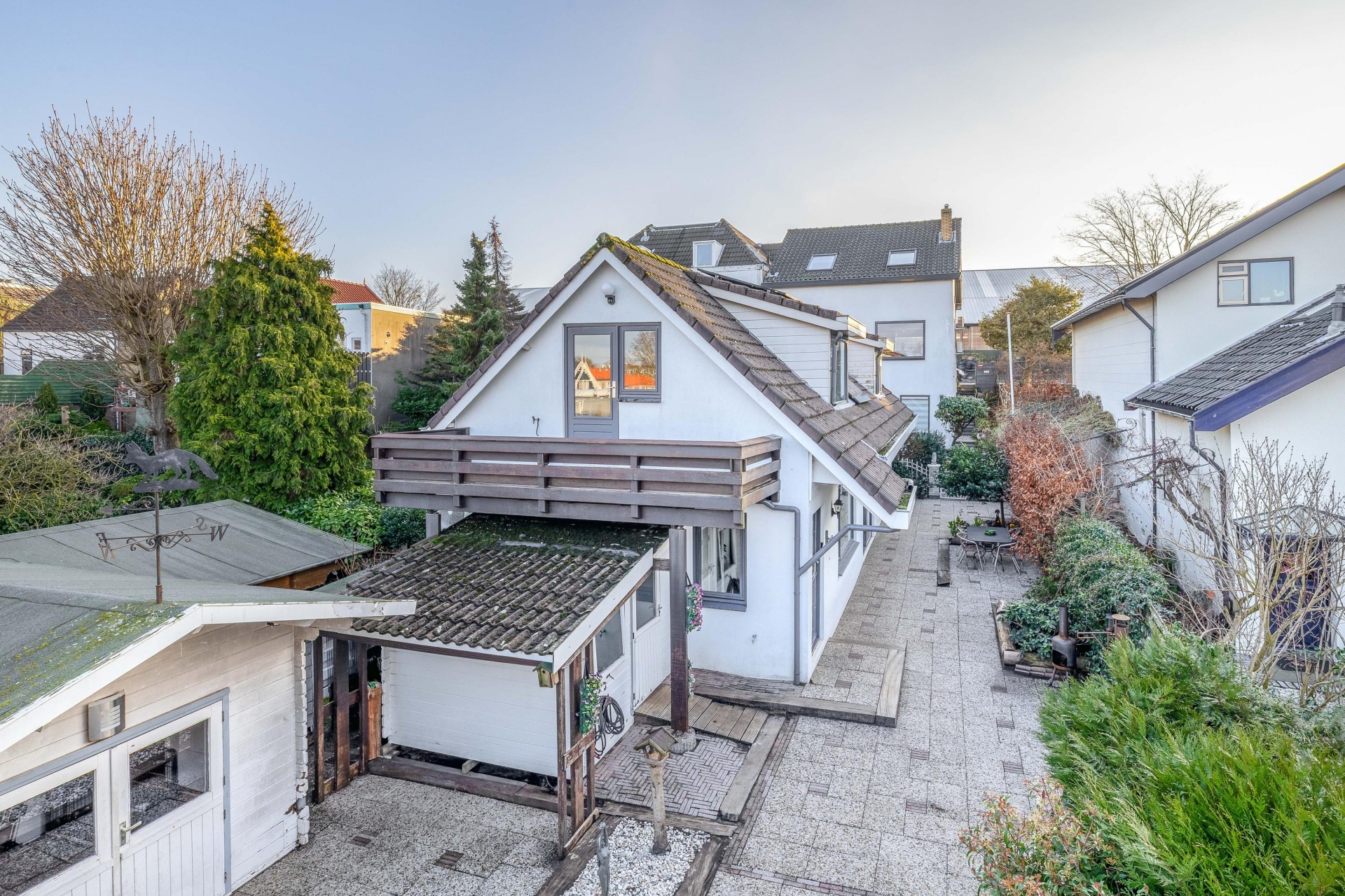 En dan is er nog een groot bijgebouw, ideaal als berging, werkruimte of voor hobby’s. Deze combinatie van binnen- en buitenruimtes maakt het perceel extra veelzijdig.