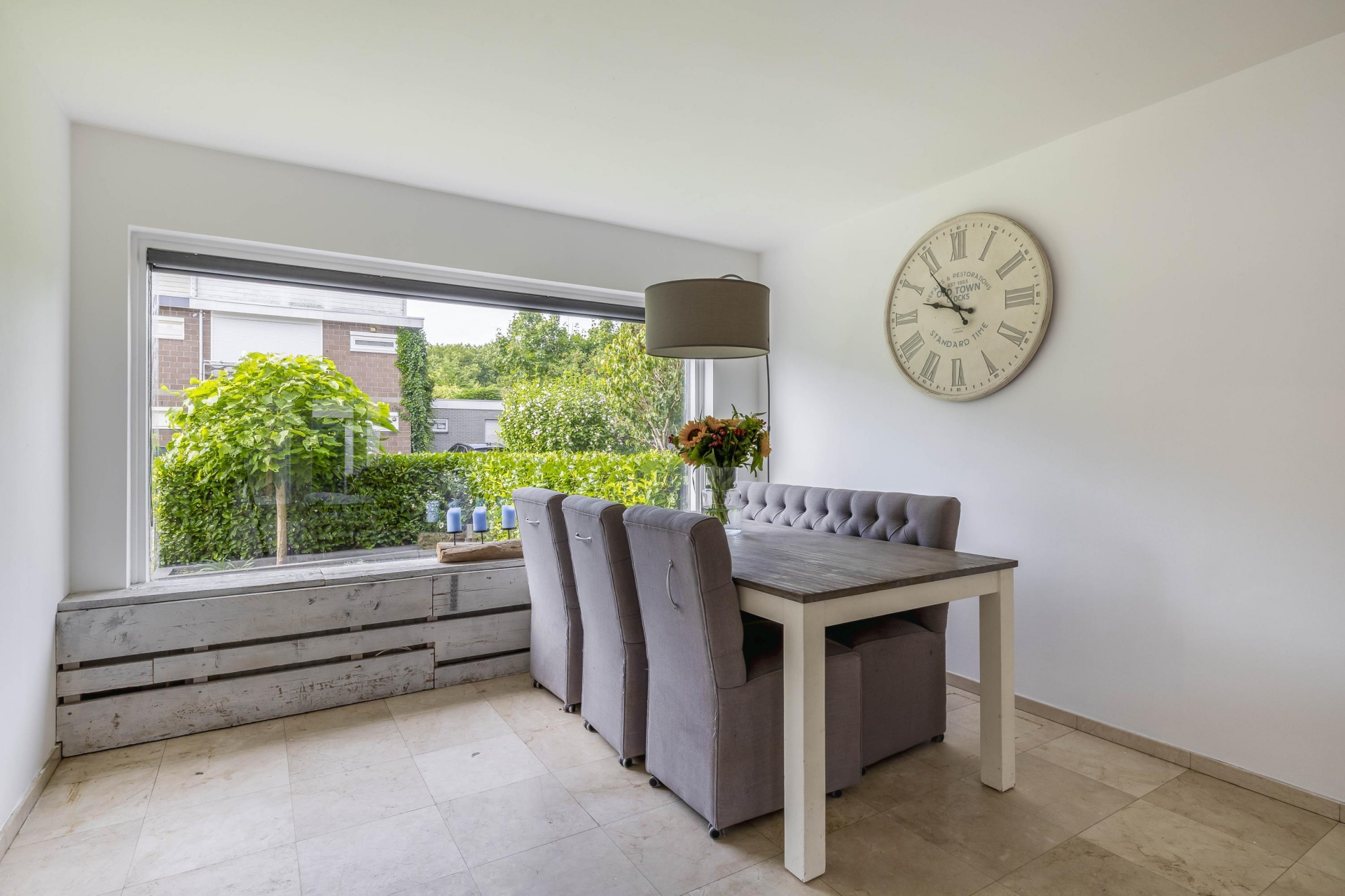 De begane grond is verrassend licht dankzij de vele raampartijen en de gunstige hoekligging. De ruime woonkamer heeft een open uitstraling en biedt genoeg plek voor een royale zithoek en een grote eettafel. De tuingerichte indeling zorgt ervoor dat je het buitengevoel naar binnen haalt – via meerdere openslaande deuren sta je zo in de tuin.