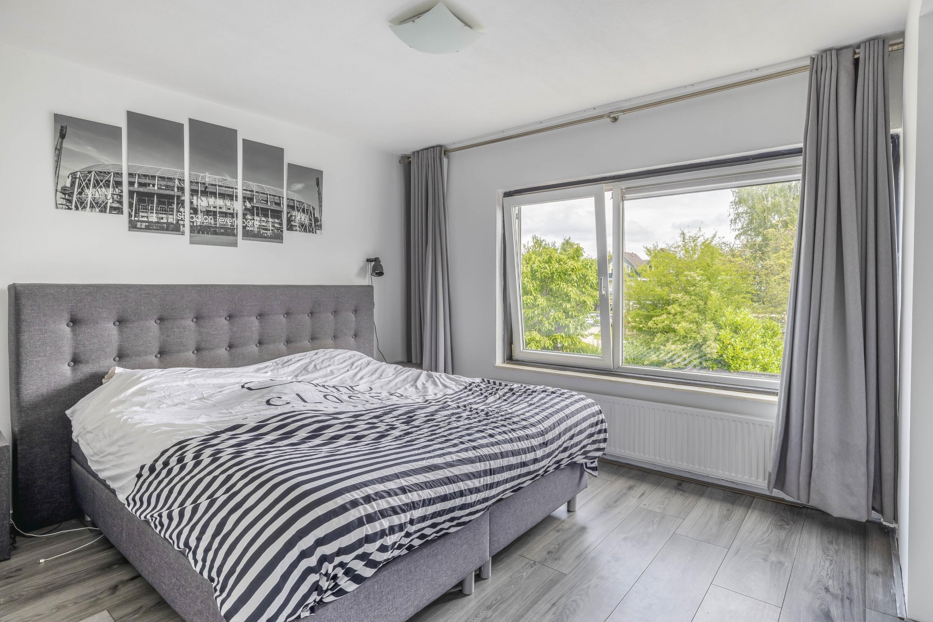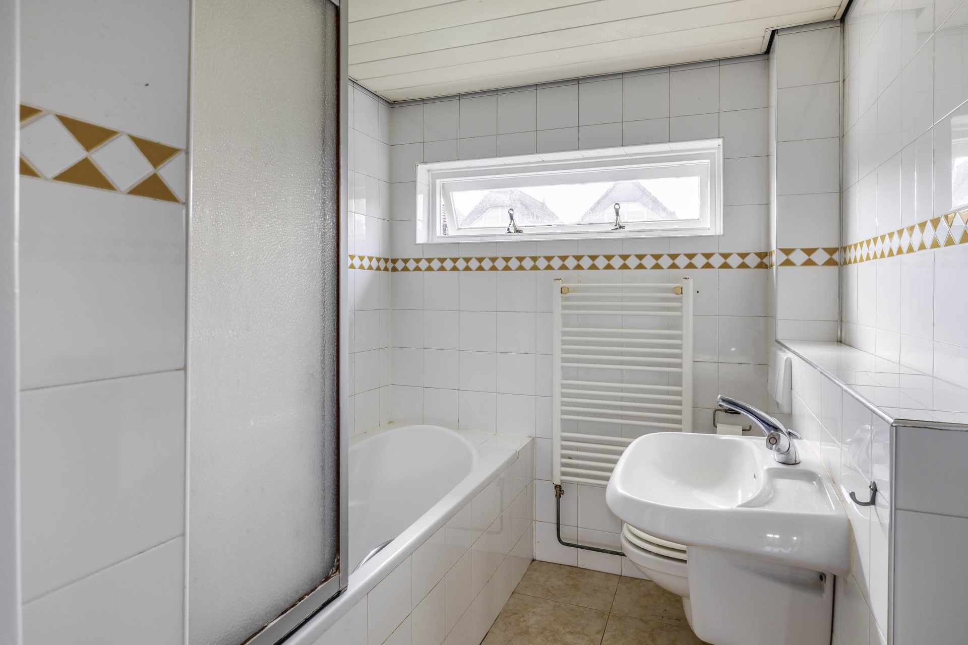 Op de eerste verdieping bevinden zich twee slaapkamers, waarvan de grootste aan de achterzijde ligt met zicht op de tuin. De badkamer is functioneel ingericht met een douche, wastafel en tweede toilet. De walk-in closet kan makkelijk omgebouwd worden tot extra slaapkamer. De tweede verdieping is bereikbaar via een vaste trap waar een derde slaapkamer te vinden is, maar kan ook worden benut als werkkamer. Hier is ook een extra douchecabine te vinden met fonteintje.