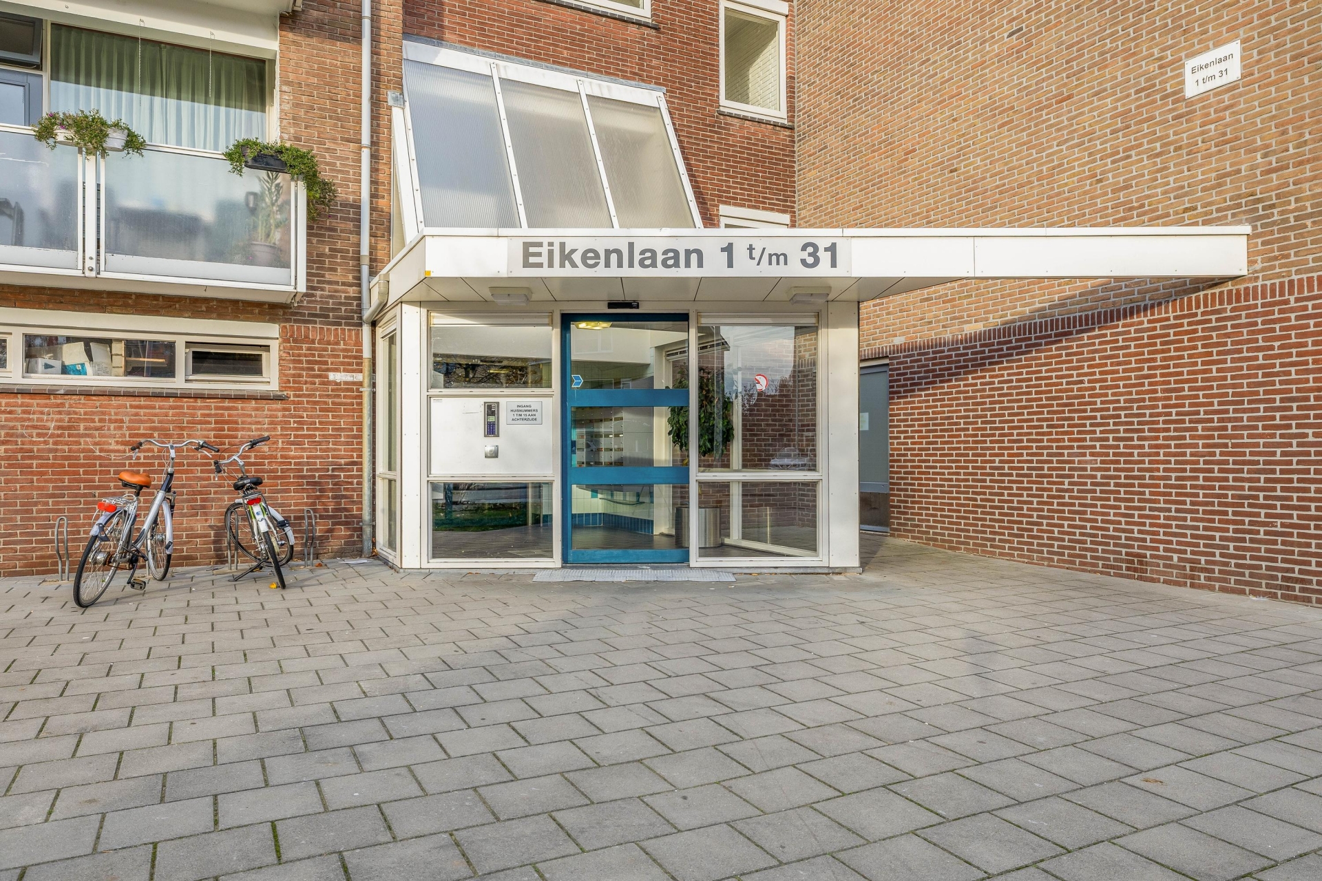 Eikenlaan 27 E maakt deel uit van een verzorgd appartementencomplex uit de jaren '60, maar de bovenste verdieping is in 1991 gerealiseerd. Het complex is voorzien van een actieve en goed functionerende VvE. De algemene ruimtes zijn netjes onderhouden, er is een liftinstallatie en de entree is voorzien van een intercomsysteem. Parkeren kan direct voor de deur op openbaar terrein. De ligging is rustig, midden in een groene woonwijk, maar wel met alle voorzieningen op loop- of fietsafstand. Winkelcentra, openbaar vervoer, uitvalswegen en recreatie liggen allemaal binnen handbereik. Een fijne combinatie van gemak, rust en bereikbaarheid.