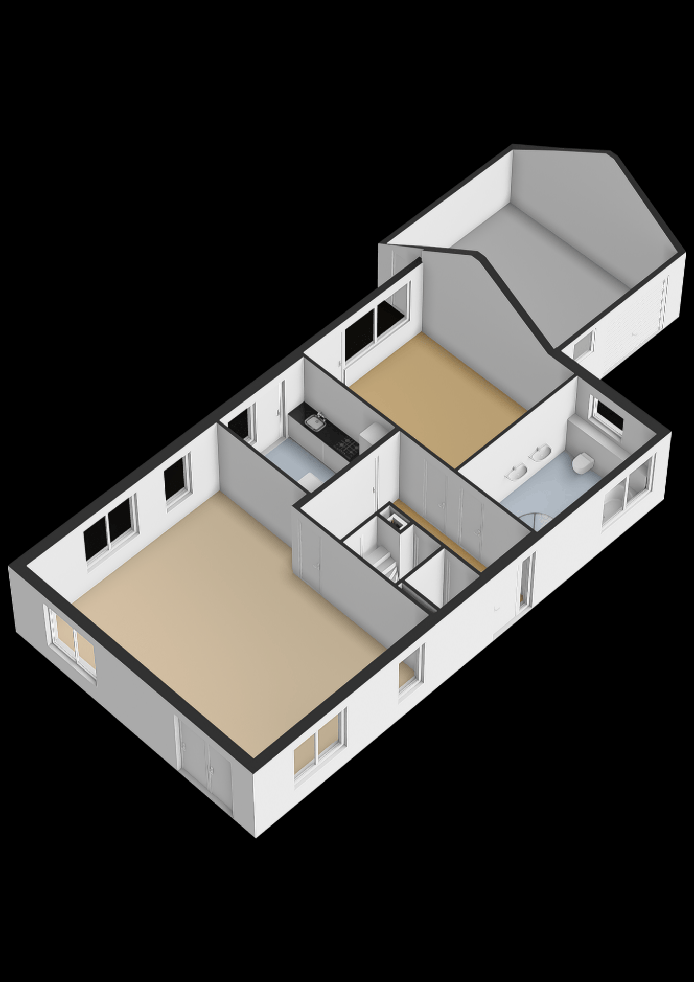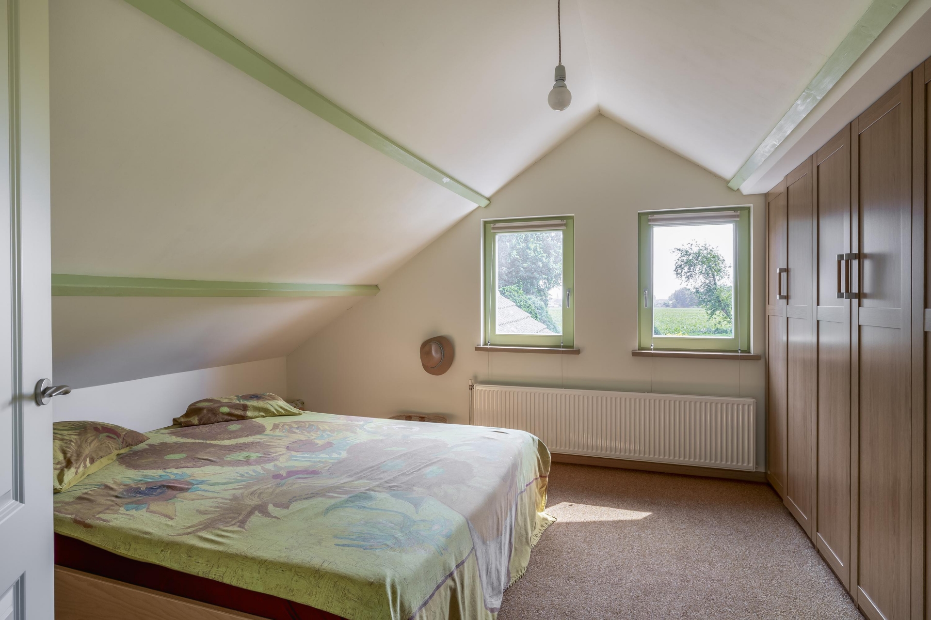 Op de begane grond bevindt zich een ruime slaapkamer, ideaal als masterbedroom. Direct daarnaast ligt de badkamer, waardoor je alles op één verdieping hebt: slapen, douchen, koken en leven. Dat maakt het huis bijzonder geschikt voor zowel doorstromers als senioren die comfort zoeken, maar niet willen inleveren op ruimte en kwaliteit.