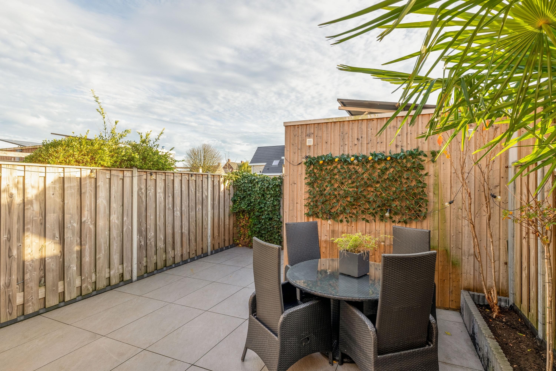 Vanuit de woonkamer stap je zo de strak aangelegde achtertuin in. De tuin ligt op het zuidoosten, wat betekent: veel zon in de middag en avond – perfect voor een barbecue of borrel met vrienden. De houten schuur achterin biedt genoeg ruimte voor fietsen en tuinkussens, en dankzij de betegeling is de tuin onderhoudsarm.