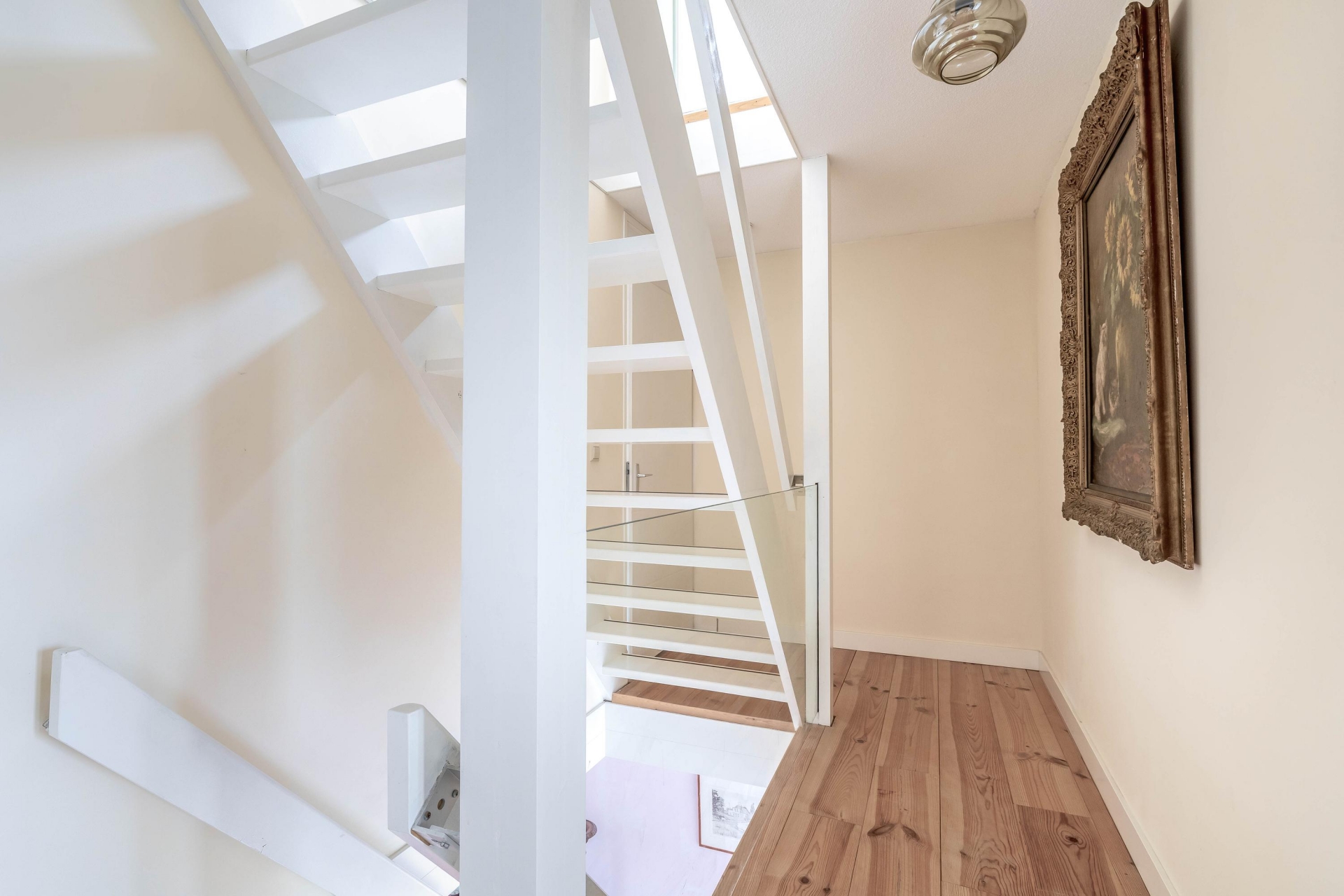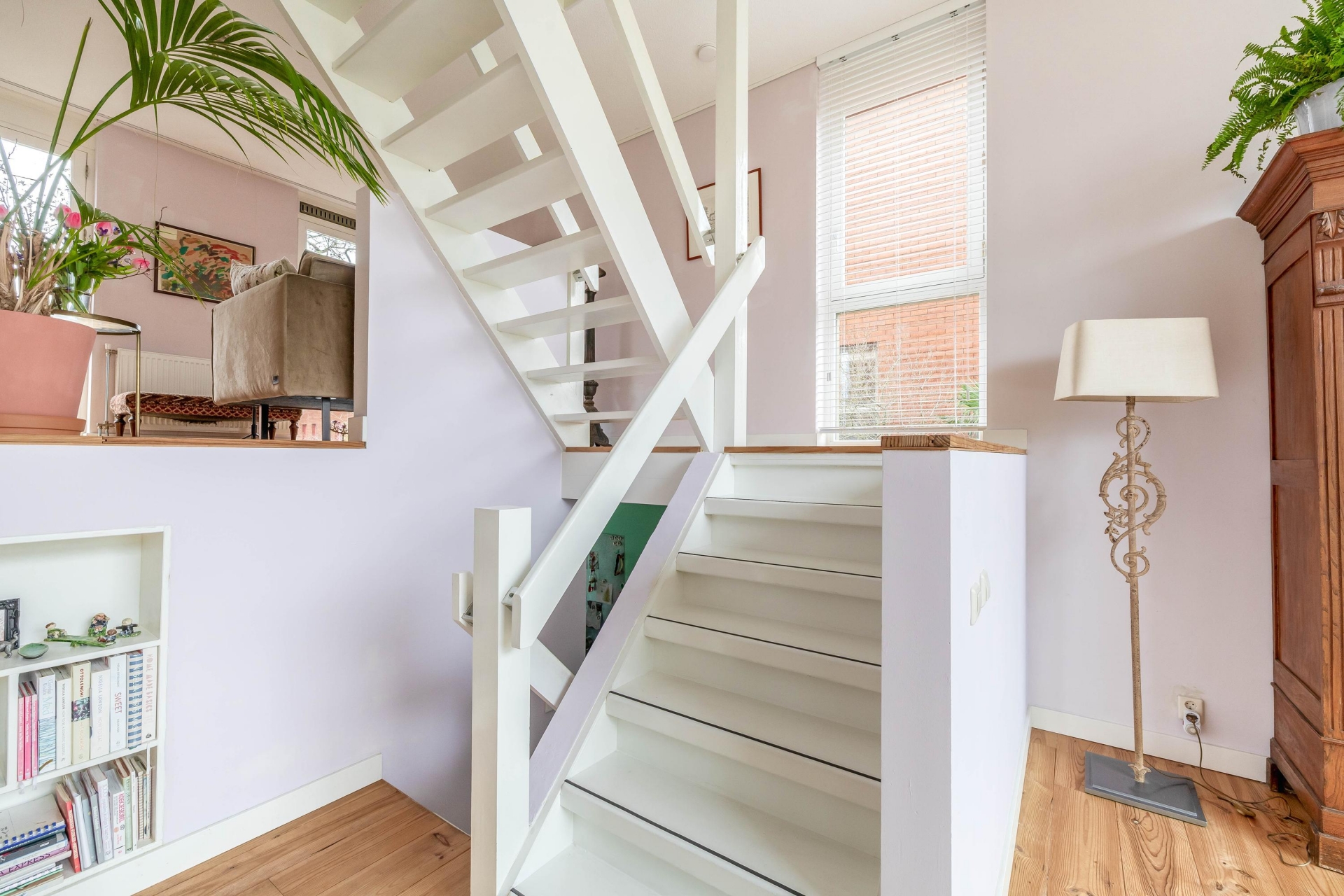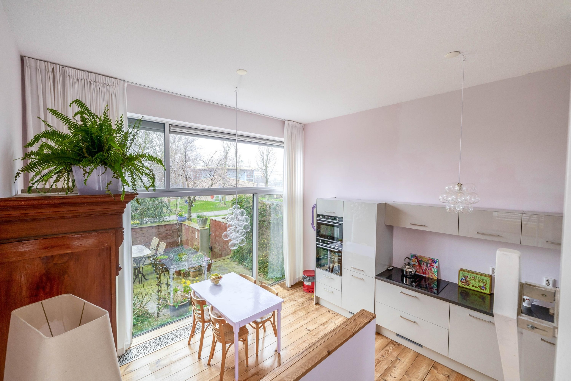 De indeling wijkt net even af van standaard en dat maakt deze woning juist zo aantrekkelijk. De woonkamer bevindt zich op de eerste verdieping en biedt een prettige, lichte leefruimte. Aan de terraskant ligt de woonkeuken. Deze grenst direct aan het terras en vormt daarmee het hart van het huis. De keuken is in 2021 vernieuwd en uitgevoerd in een moderne, rechte opstelling met diverse inbouwapparatuur. Er is volop ruimte voor een grote eettafel, waardoor koken, tafelen en samenzijn hier moeiteloos samenkomen. Op de derde verdieping bevinden zich twee slaapkamers en de ruime badkamer. De grootste slaapkamer op deze verdieping is heerlijk licht en biedt voldoende plek voor een groot bed en kastruimte. De tweede kamer is perfect als kinderkamer, werkplek of logeerkamer. De badkamer is compleet uitgevoerd met een ligbad, douchecabine, dubbele wastafel en een tweede toilet. De bovenste verdieping telt nog eens twee ruime slaapkamers. De grootste kamer op deze etage is bijzonder royaal en kan ook uitstekend dienen als master bedroom. De vierde slaapkamer is eveneens van goed formaat. Op de overloop bevindt zich de cv-ruimte.