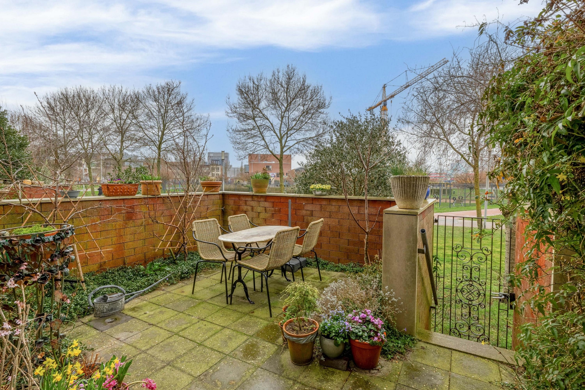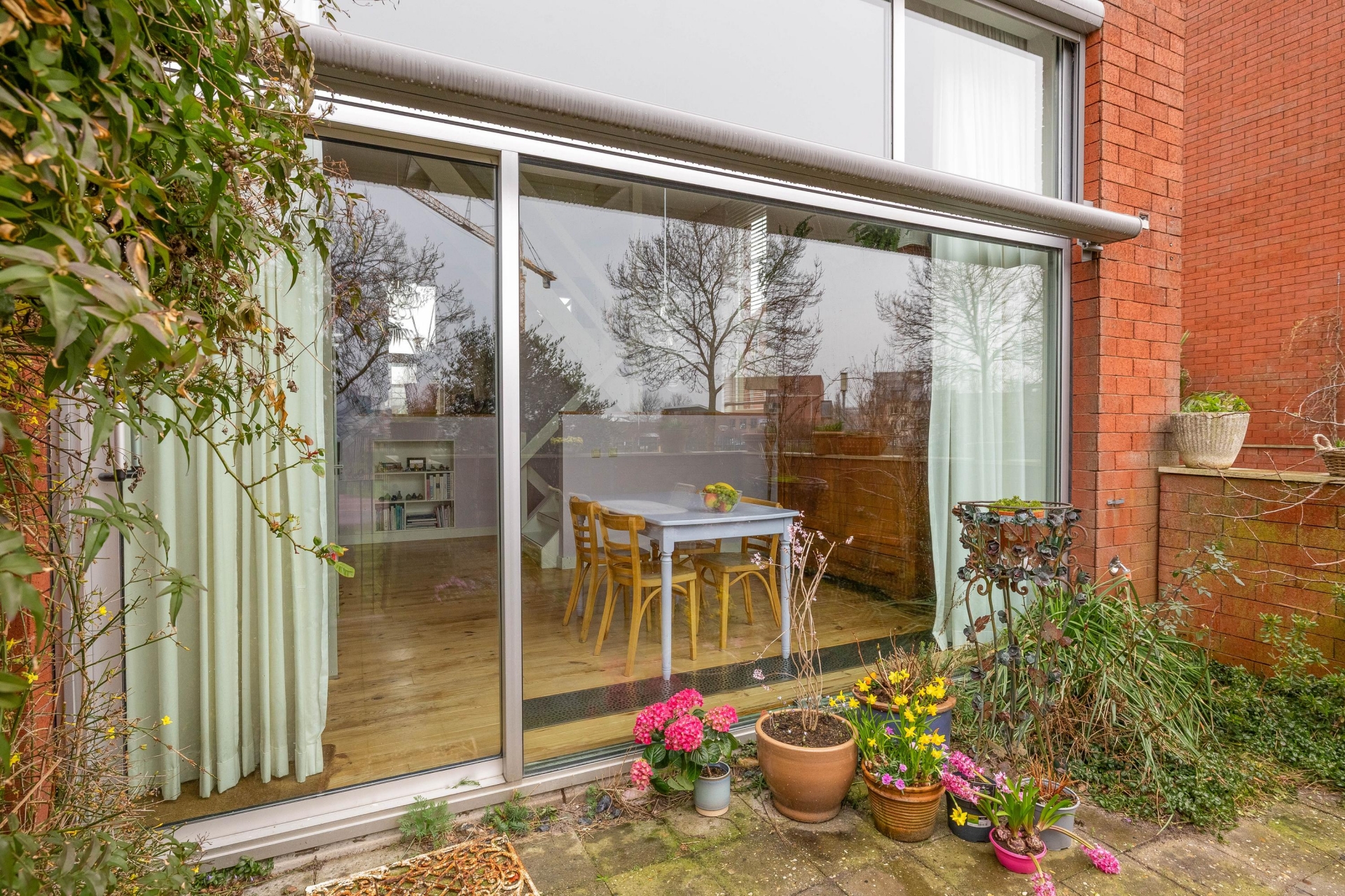 Het terras is gelegen op het zuiden en grenst direct aan het park. Hier geniet je volop van de zon, privacy en het groene uitzicht. Een kop koffie in de ochtendzon of een borrel aan het einde van de dag – dit is echt een verlengstuk van je woonkamer.