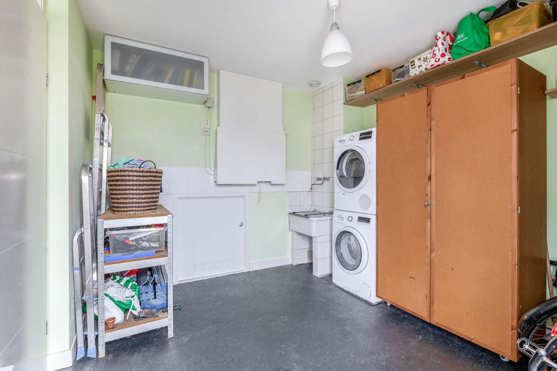 Op de begane grond bevindt zich de entree met toilet en meterkast. Daarnaast is er een ruime en multifunctionele bijkeuken. Deze ruimte is voorzien van verwarming, ventilatie en zowel koud als warm stromend water. Ook bevindt zich hier de aansluiting voor de wasmachine. Dankzij de aparte toegangsdeur is deze ruimte ideaal voor fietsen, opslag of als praktische werk- of hobbyruimte.