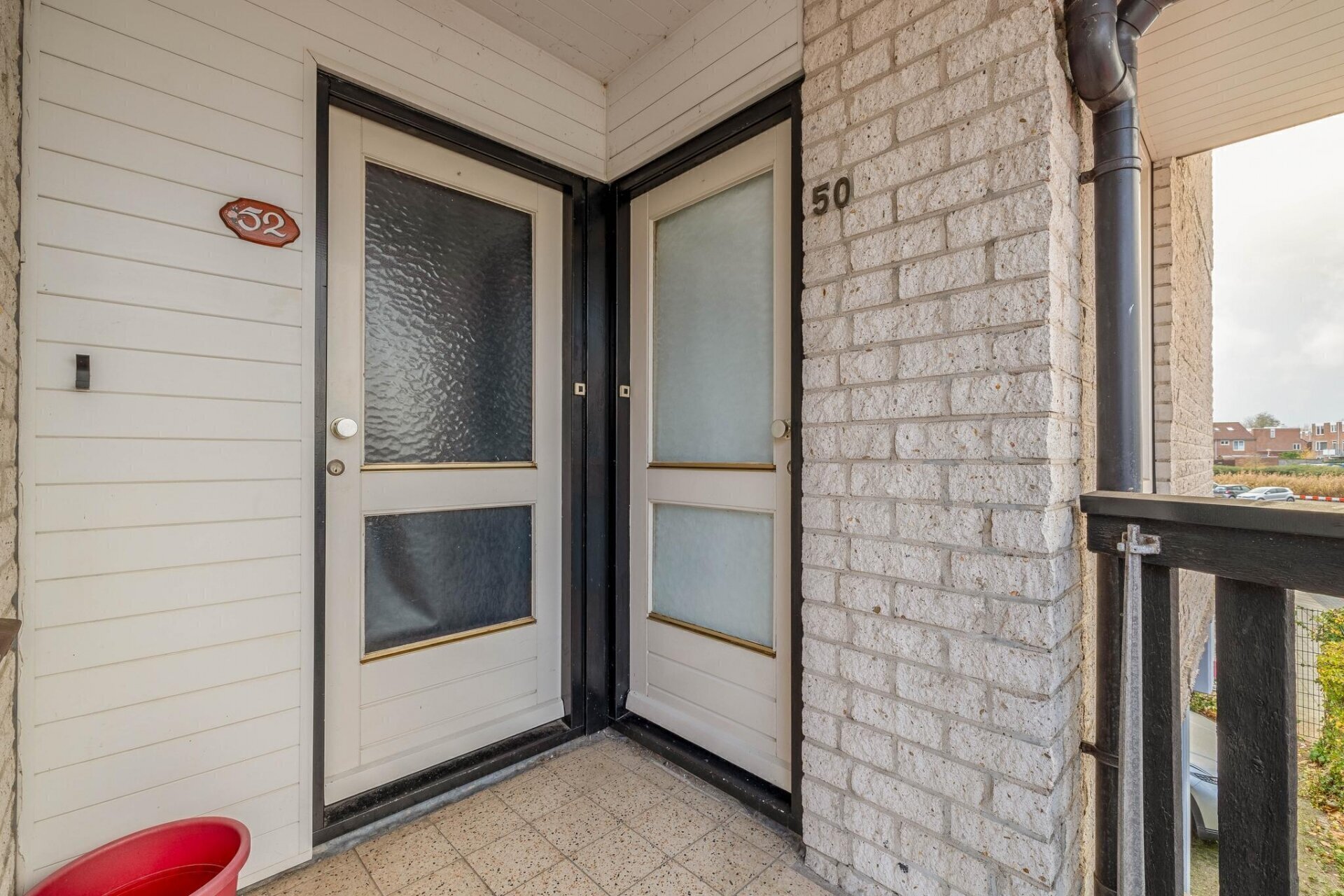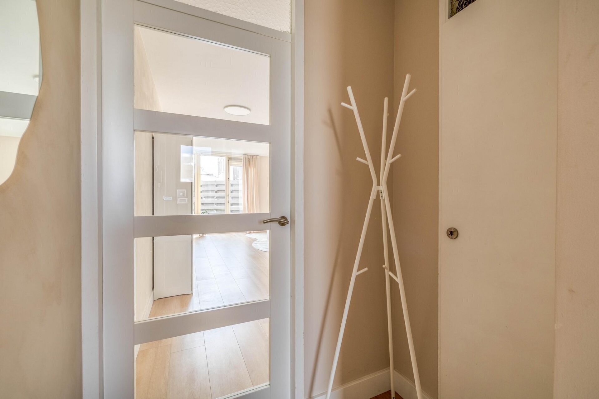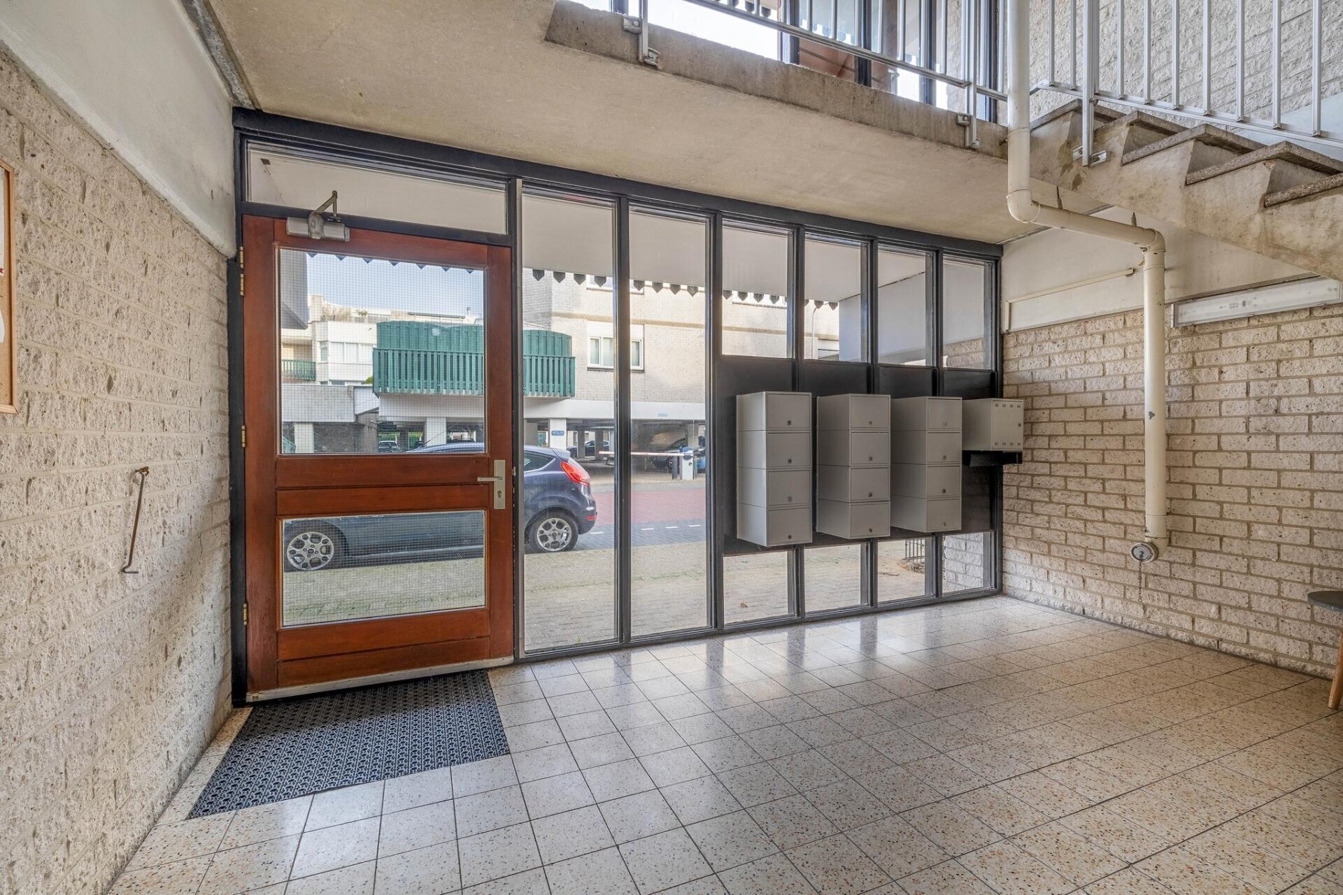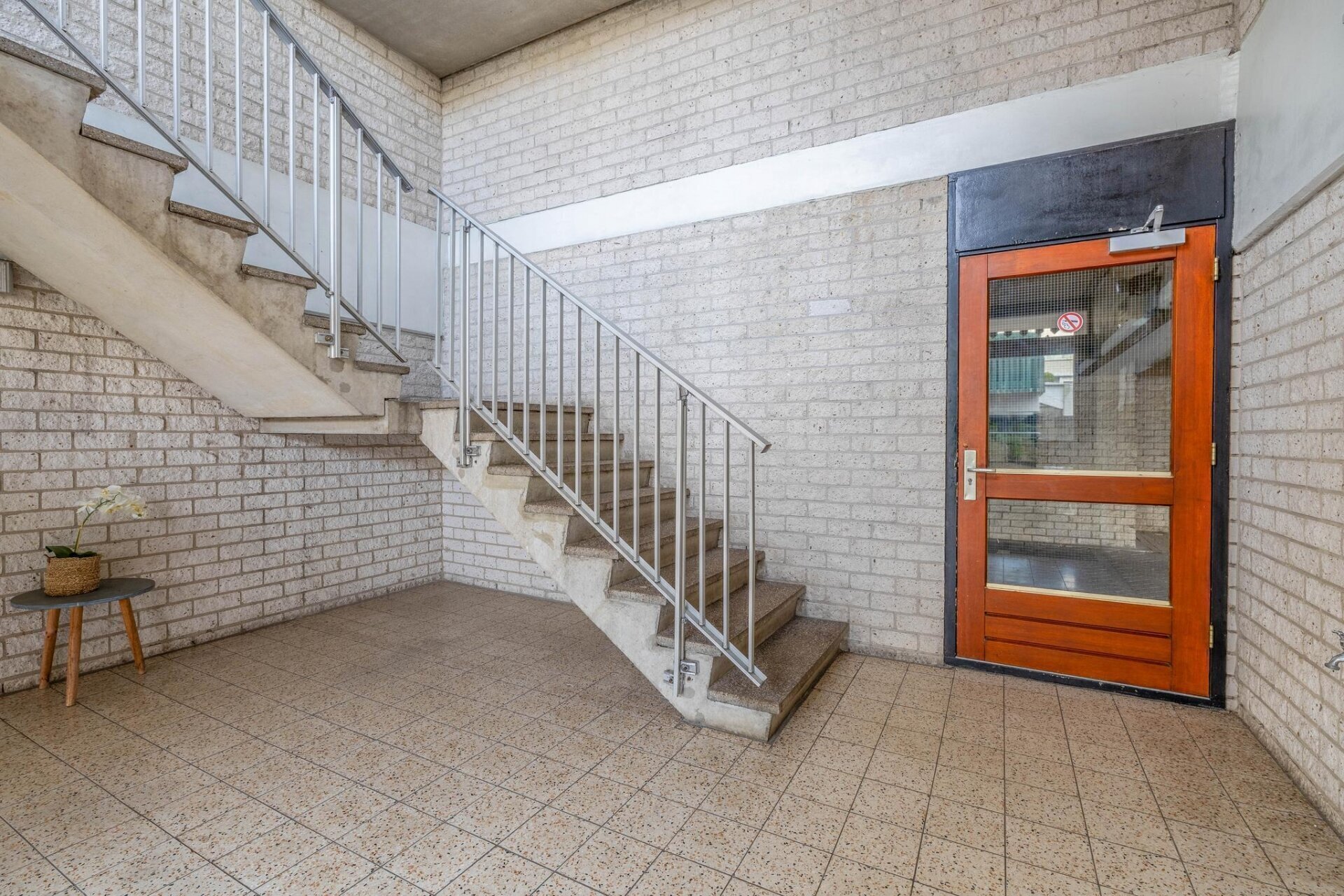 Via de centrale entree met brievenbussen en toegang tot het trapportaal bereik je het appartement. Bij binnenkomst leidt de hal je naar alle vertrekken in de woning.
