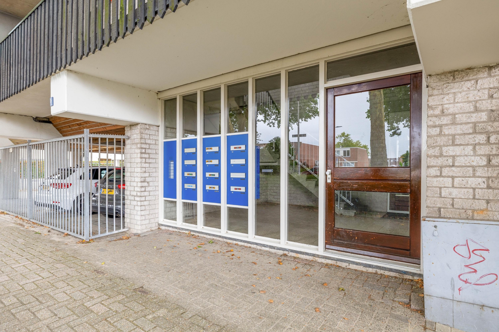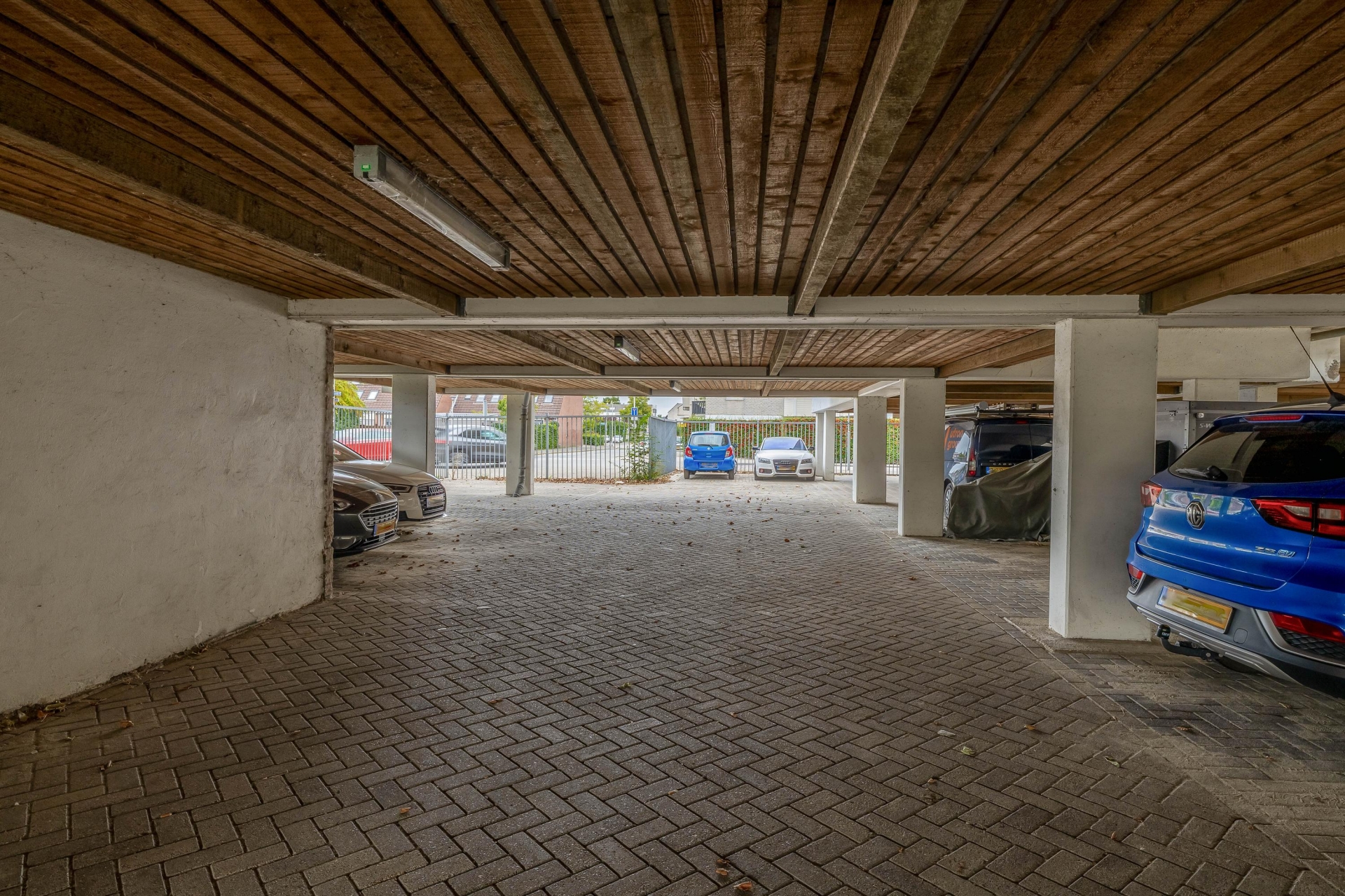 Bij het appartement hoort een eigen parkeerplaats op het afgesloten parkeerterrein. Dankzij de poort is dit terrein alleen toegankelijk voor bewoners. Dat betekent altijd een plekje voor de deur, geen gedoe met krabben in de winter en droog uitstappen bij regen. De privéberging ligt in het naastgelegen complex en biedt ruimte voor fietsen en opslag.