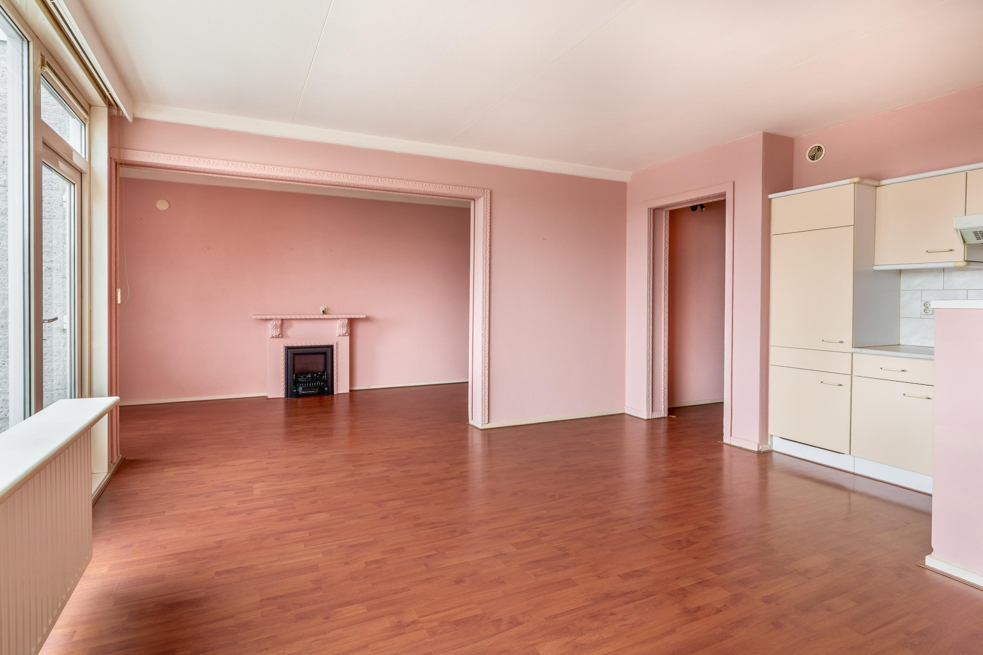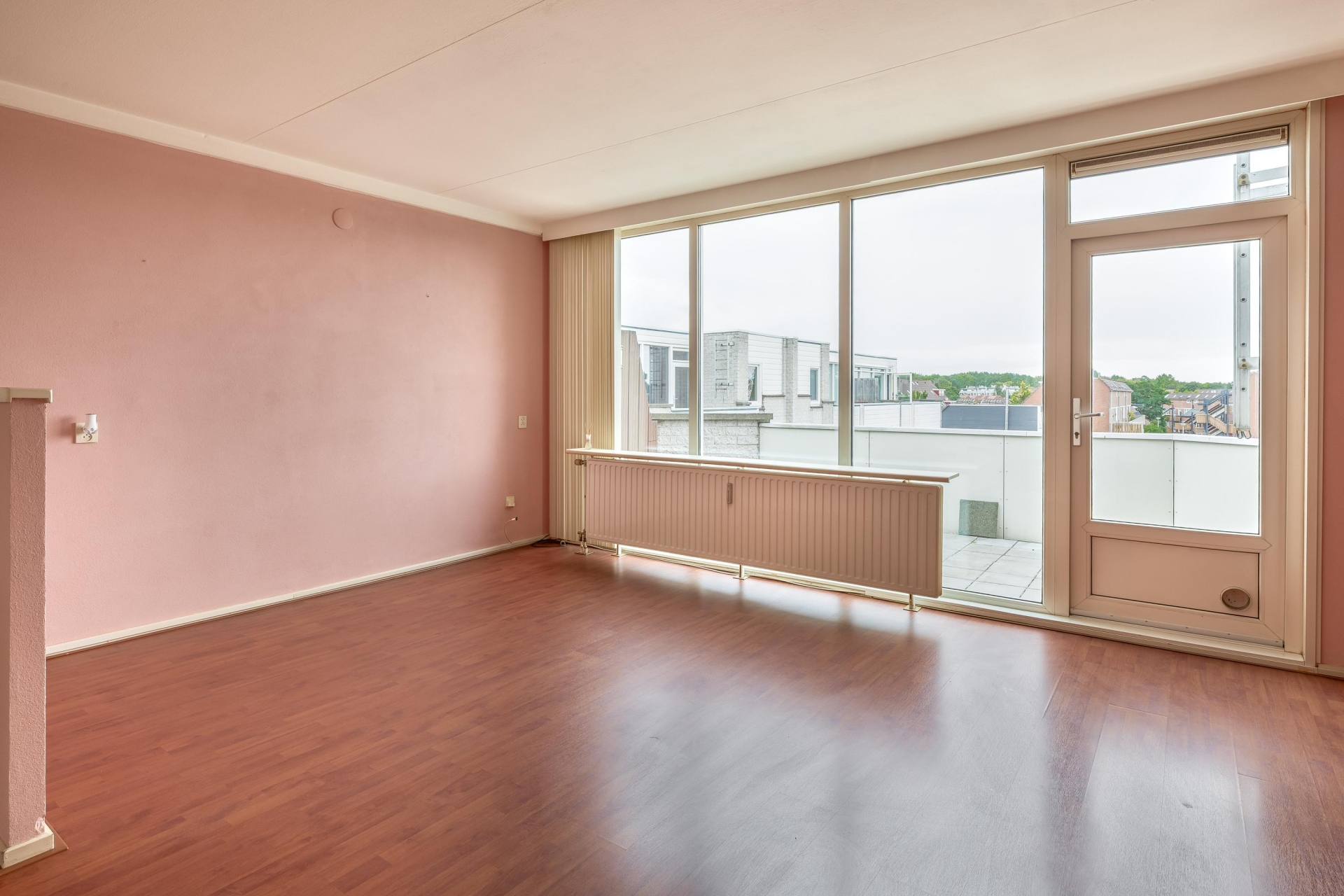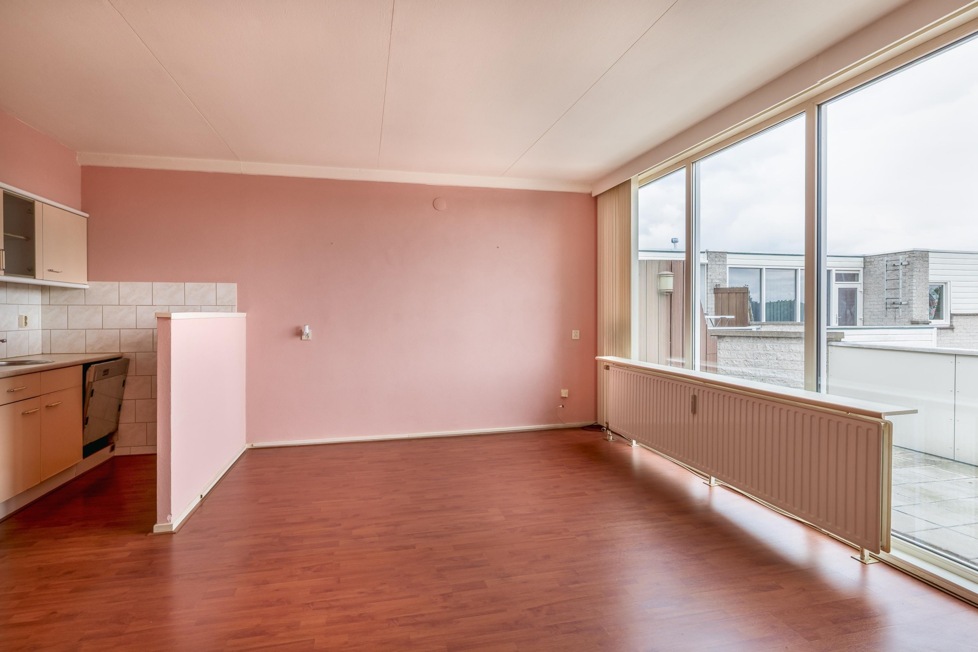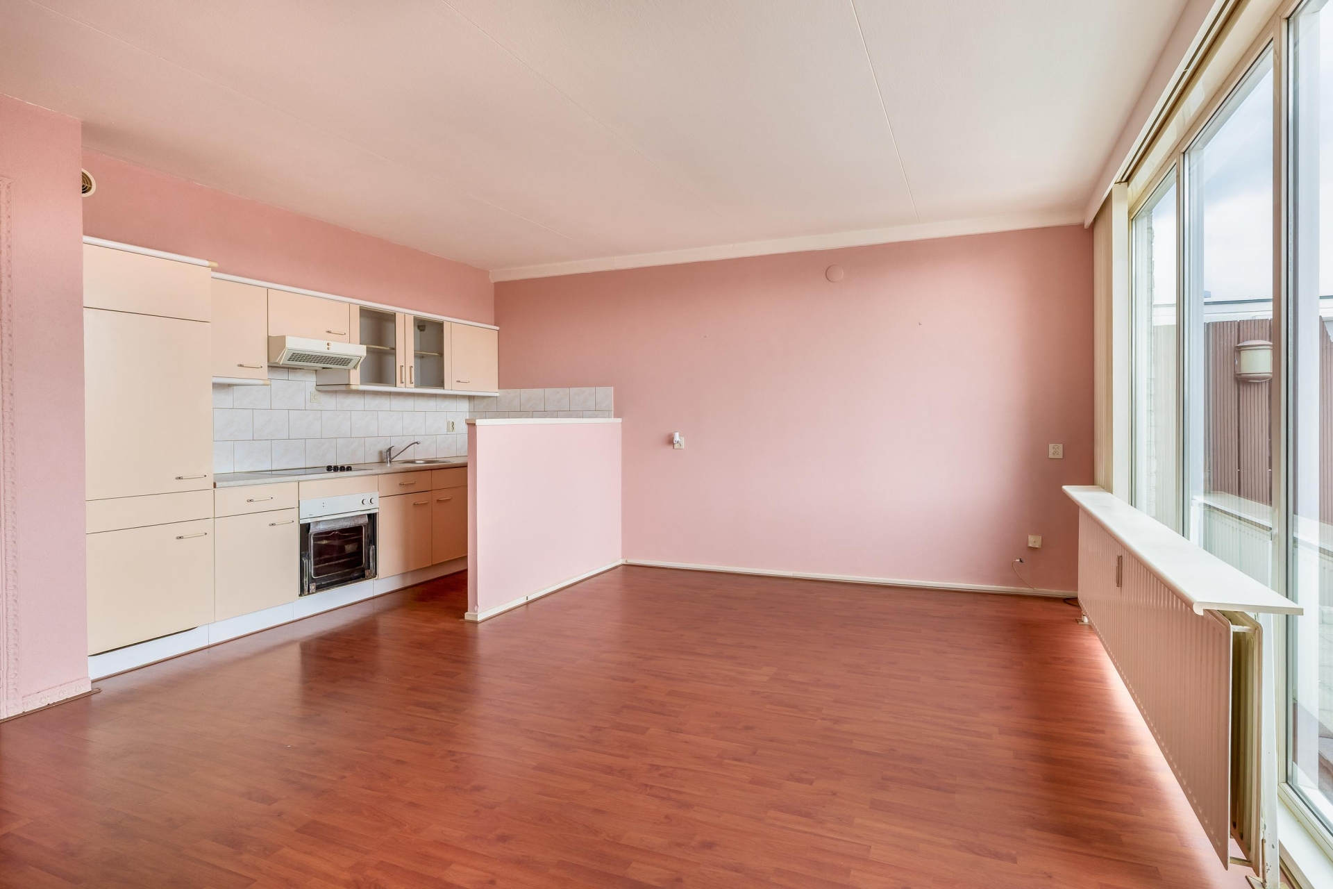 De woonkamer is heerlijk licht en sluit aan op de halfopen keuken, waardoor je een ruimtelijk gevoel hebt in het hart van het appartement. De eetkamer is groot genoeg om als aparte werk- of logeerkamer te gebruiken. De badkamer is volledig betegeld en voorzien van douche, wastafel en wasmachineaansluiting. Het toilet met fonteintje bevindt zich apart. En het balkon? Dat ligt op het zonnige zuiden, dus volop genieten van de middag- en avondzon.