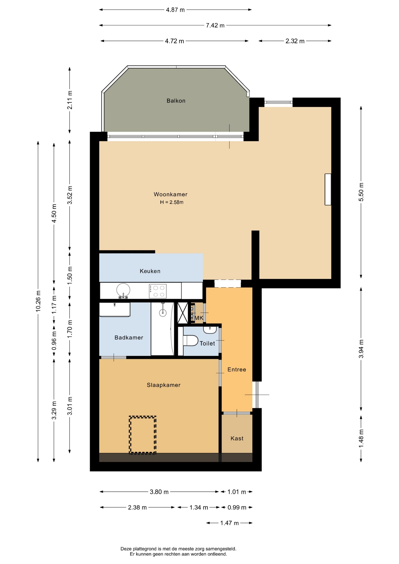 “Deze informatie is door ons met de nodige zorgvuldigheid samengesteld. Onzerzijds wordt echter geen enkele aansprakelijkheid aanvaard voor enige onvolledigheid, onjuistheid of anderszins, dan wel de gevolgen daarvan. Alle opgegeven maten en oppervlakten zijn indicatief.”