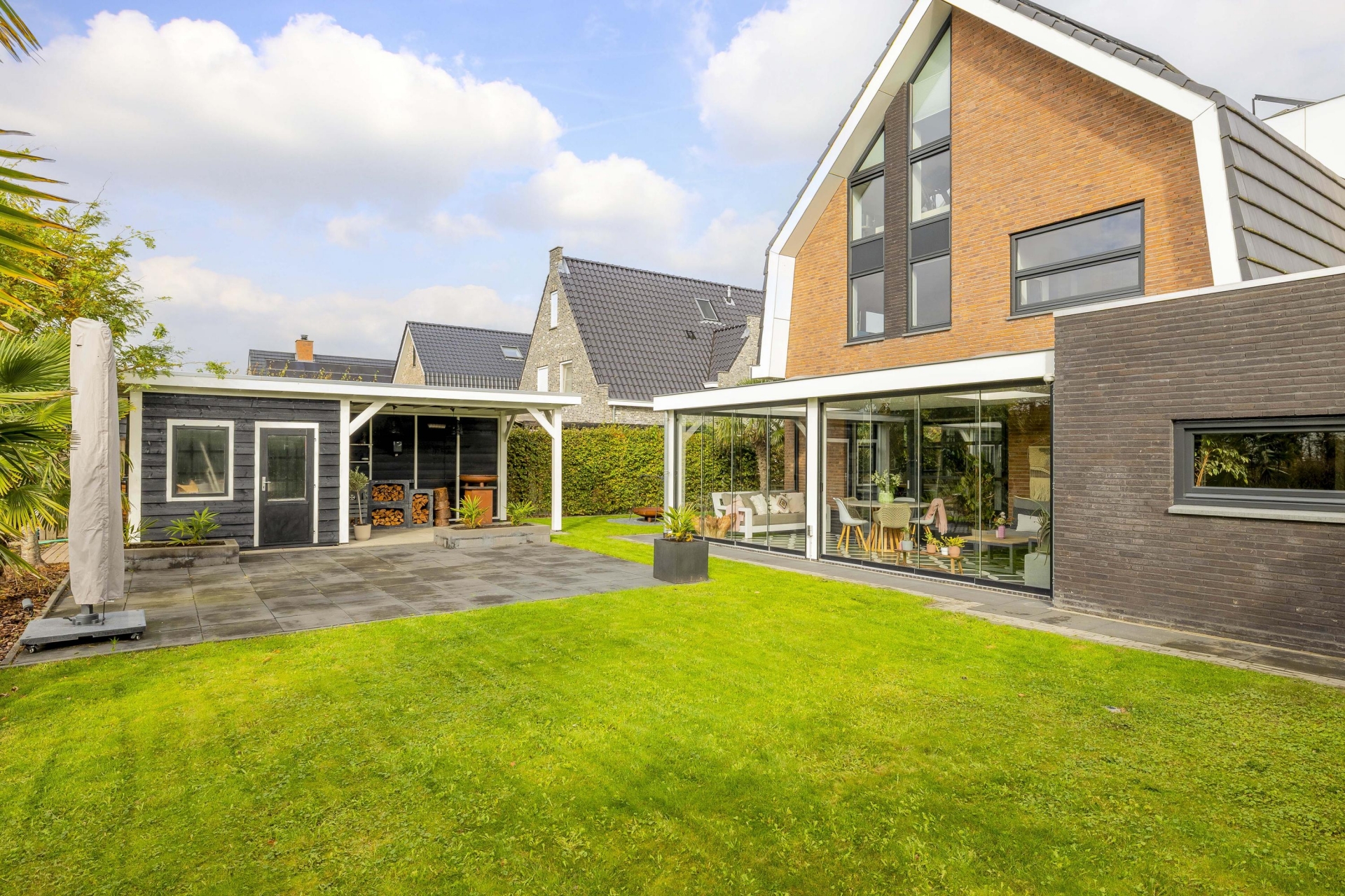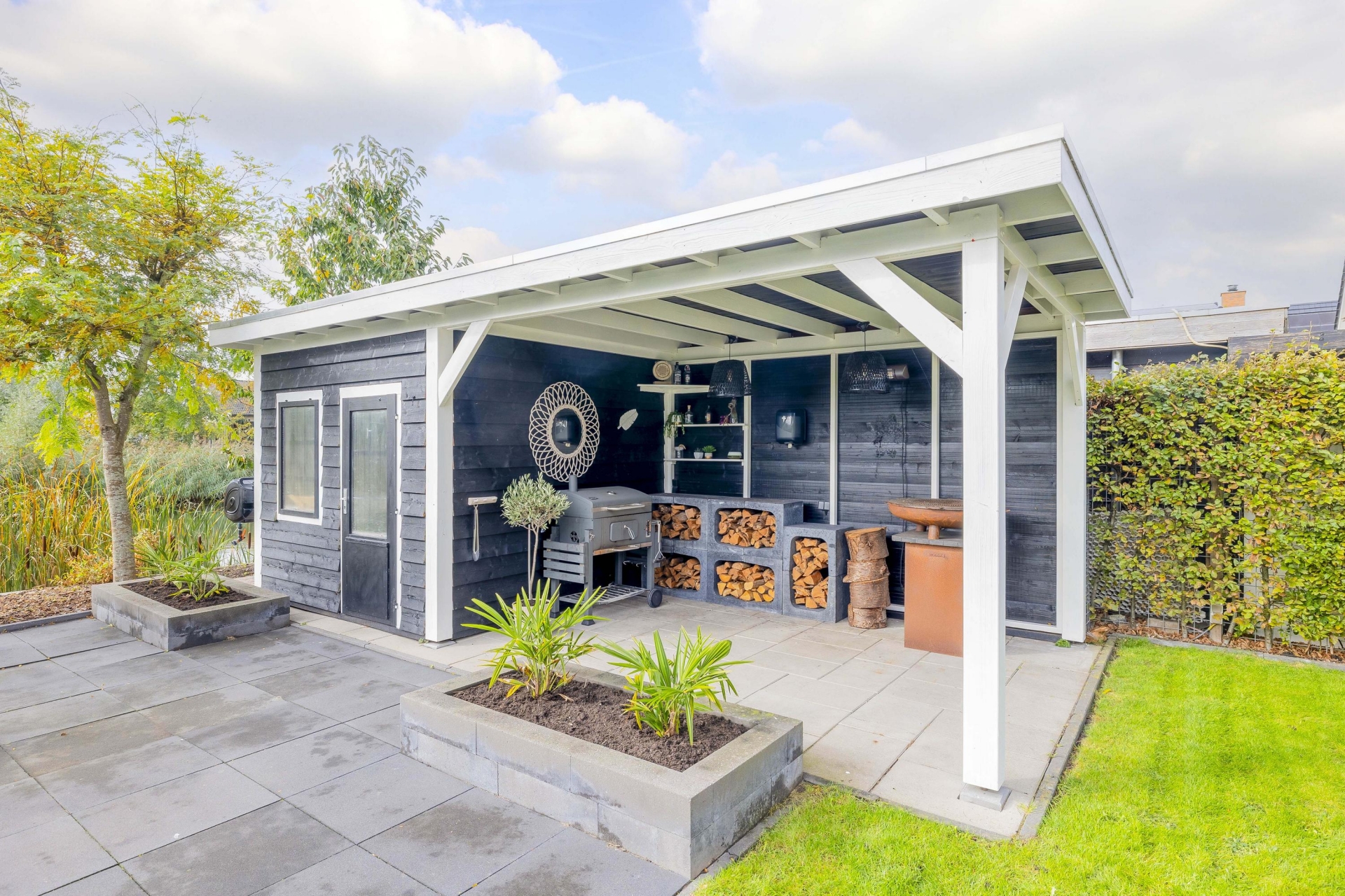 Buiten is het minstens zo indrukwekkend als binnen. De tuin ligt rondom het huis en is met zorg ontworpen. Aan de achterzijde geniet je van volledige privacy, een zuidwestelijke ligging en directe ligging aan een waterpartij. De houten vlonder is dé plek voor een borrel bij zonsondergang of een goed boek in alle rust. De serre vormt het verlengstuk van deze tuinbeleving en maakt buitenleven mogelijk in elk seizoen. Daarnaast is er nog een buitenberging aanwezig met een sfeervolle veranda.