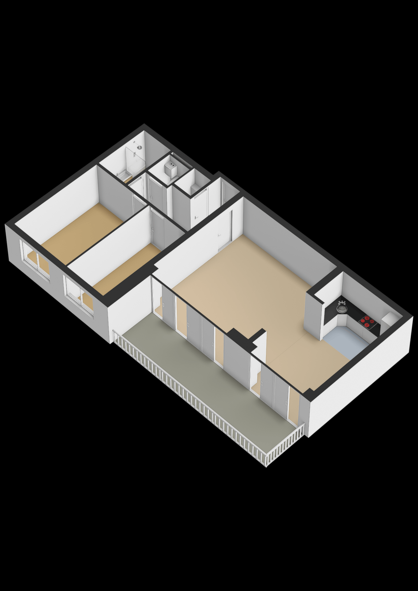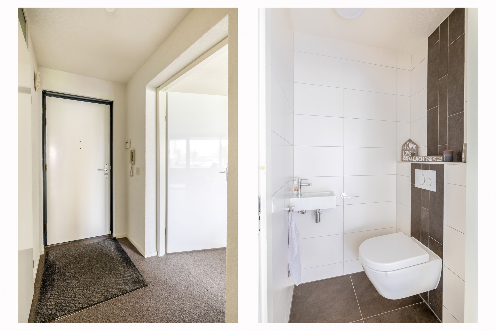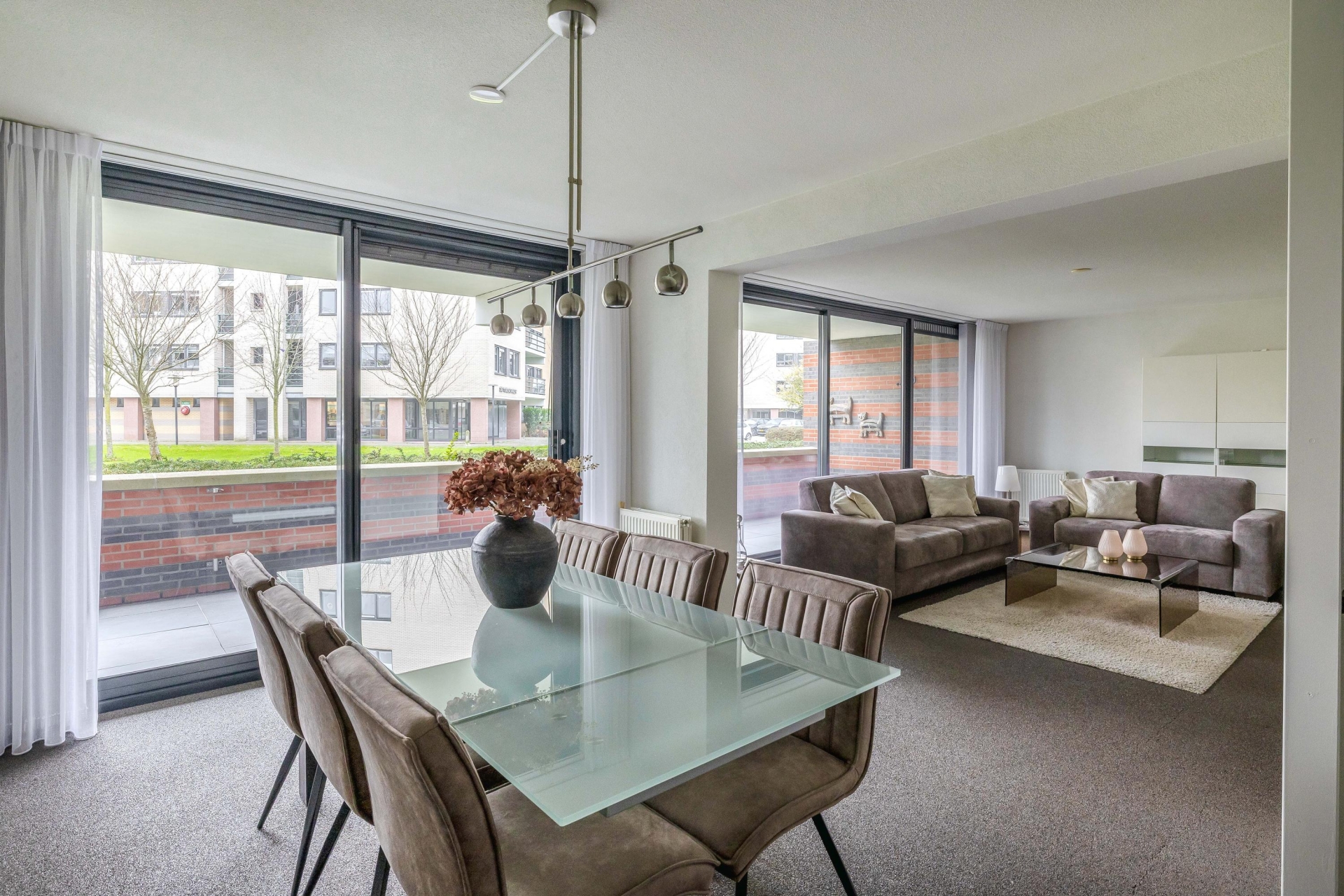 Entree, met toegang tot de vertrekken, de 2 slaapkamers, de badkamer, het toilet en een technische ruimte. De woonkamer met open keuken beschikt over grote raampartijen met een grote schuifpui naar de buitenruimte voor de nodige daglichttoetreding. Door de gunstige ligging op het zuidoosten kan je hier de hele ochtend en middag van de zon genieten. De open keuken heeft een U-vormige opstelling en is voorzien van diverse inbouwapparatuur. De slaapkamers hebben een oppervlakte van 10 en 15 m² en beschikken over kunststof kozijnen. De badkamer is volledig betegeld en is voorzien van een ruime inloopdouche en een wastafel gecombineerd met een meubel. In de technische ruimte is de opstelplaats voor wasmachine, droger en cv-ketel (oktober 2025) te vinden.