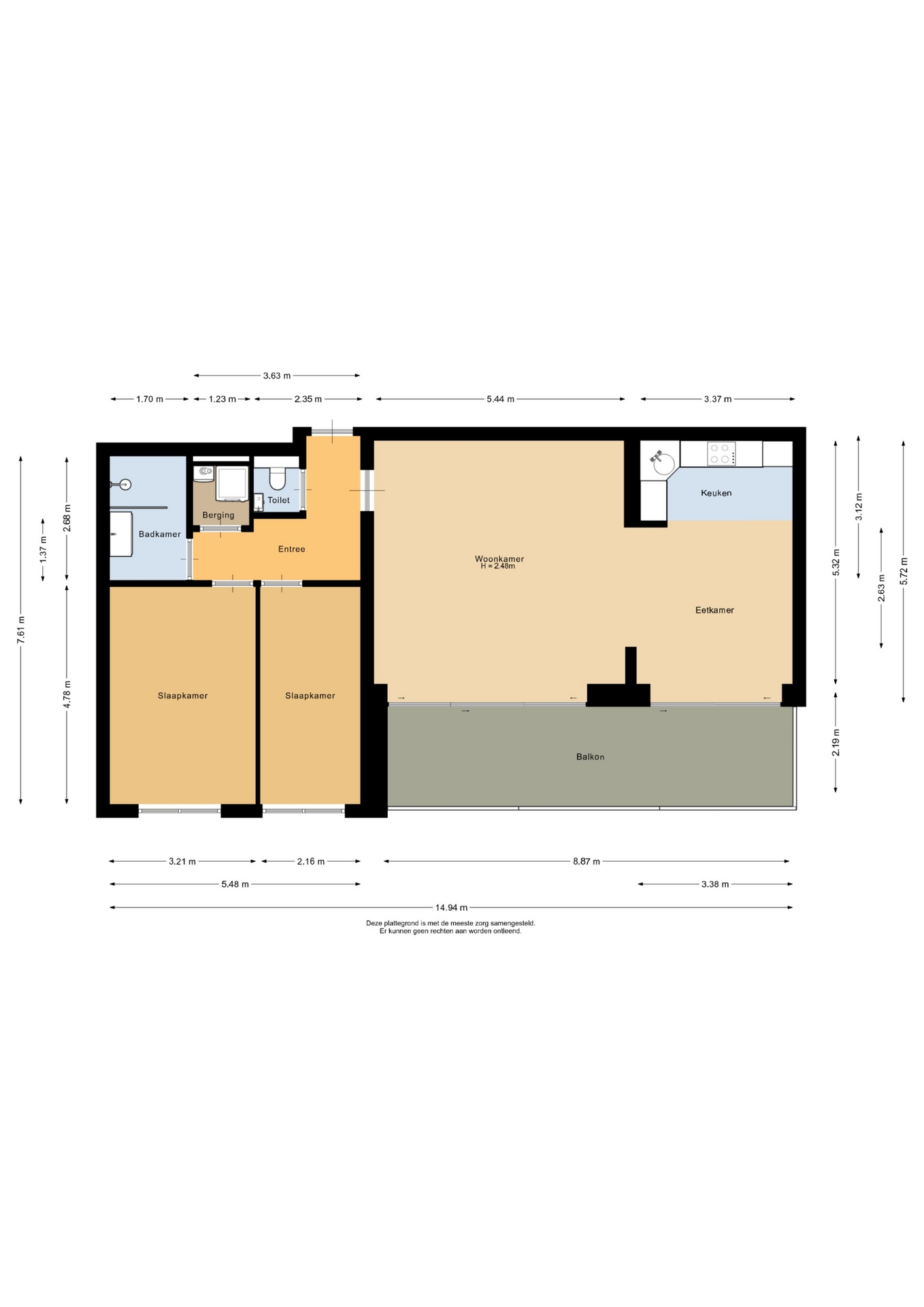 “Deze informatie is door ons met de nodige zorgvuldigheid samengesteld. Onzerzijds wordt echter geen enkele aansprakelijkheid aanvaard voor enige onvolledigheid, onjuistheid of anderszins, dan wel de gevolgen daarvan. Alle opgegeven maten en oppervlakten zijn indicatief.”